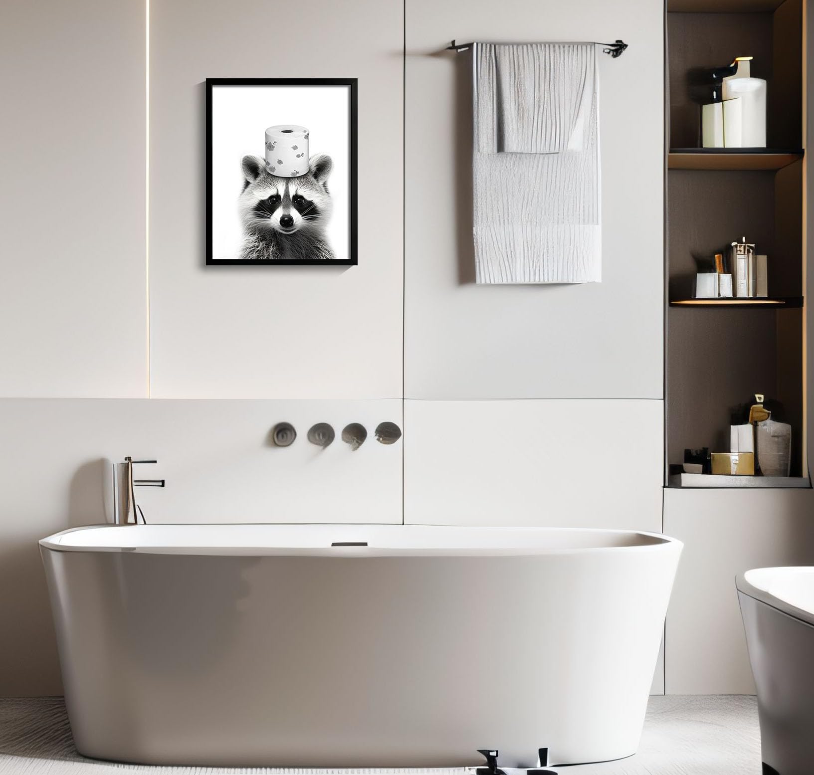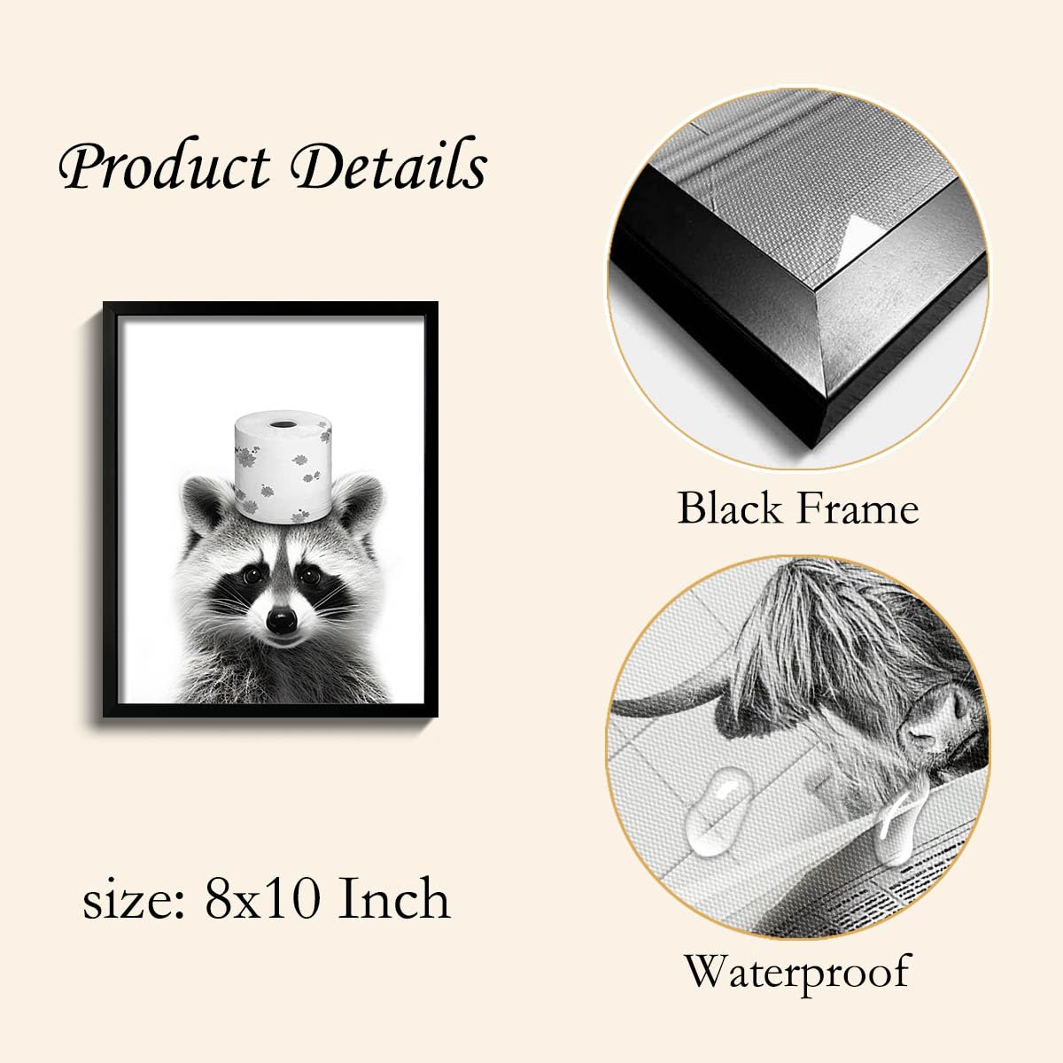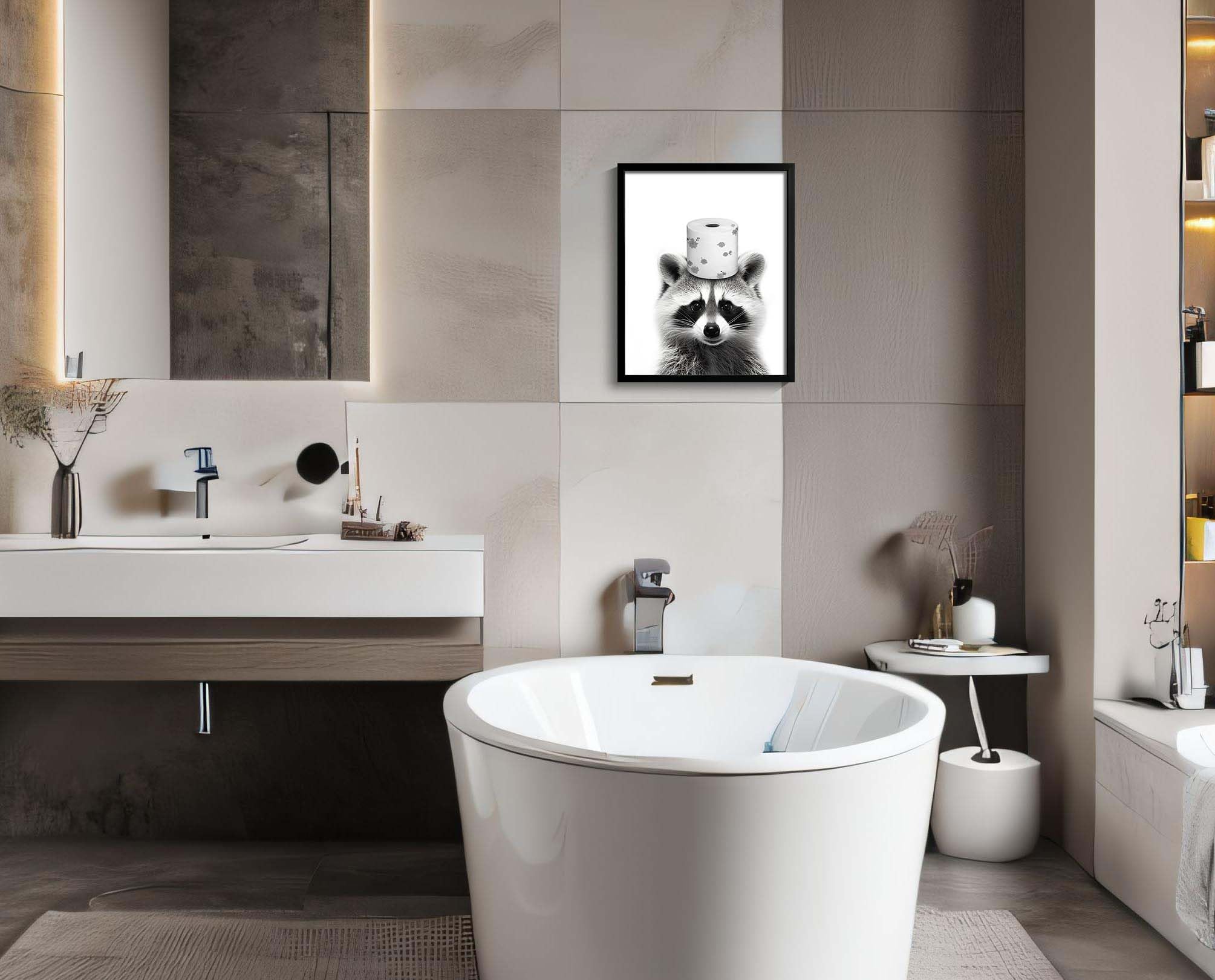 ♥【Perfect Small Size】At 8x10 inches, this bathroom decor wall art is the ideal size for adding some character to small spaces like corners, hallways or bathrooms. this cute raccoon wall art is perfect choice of kid's room.