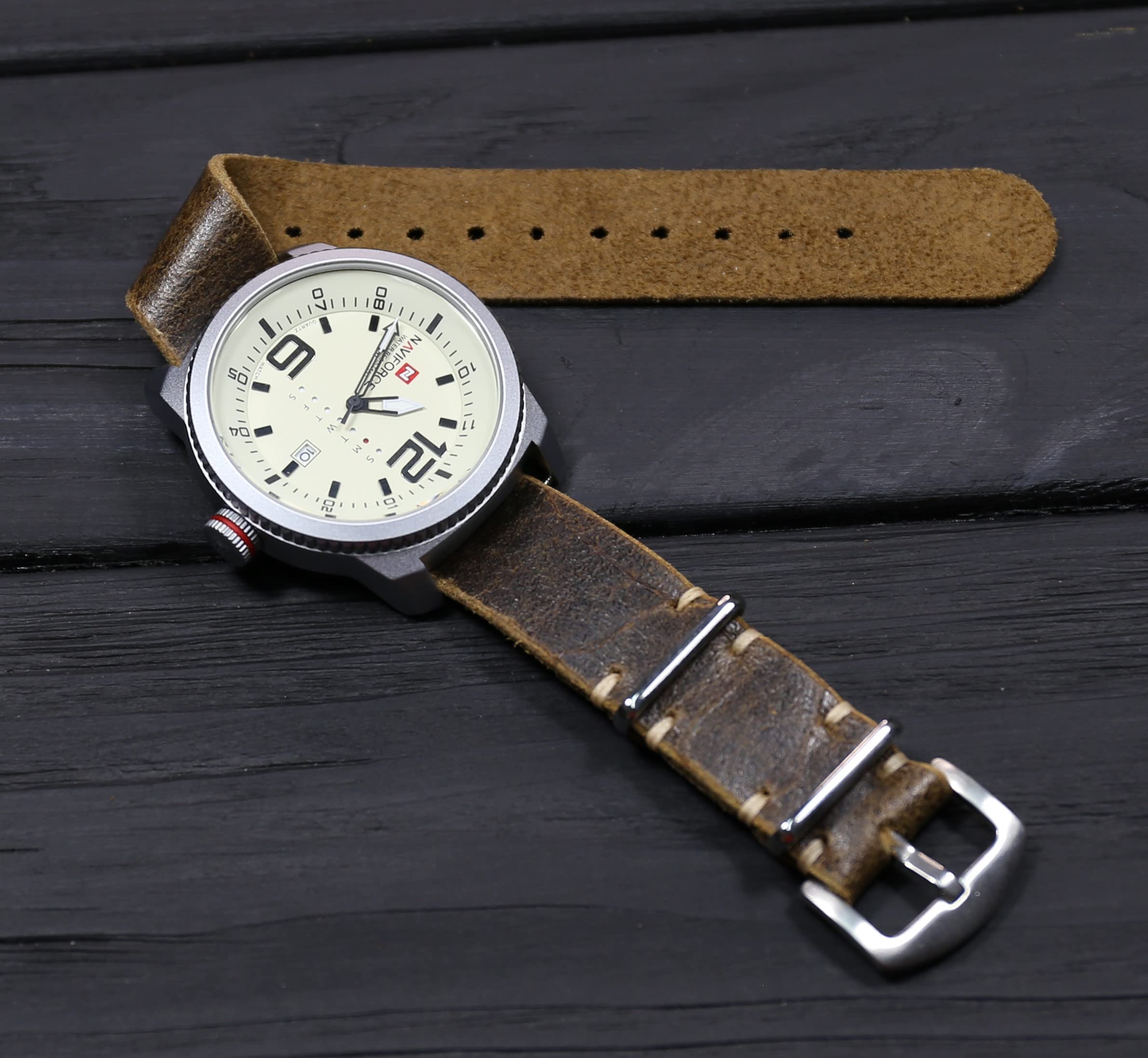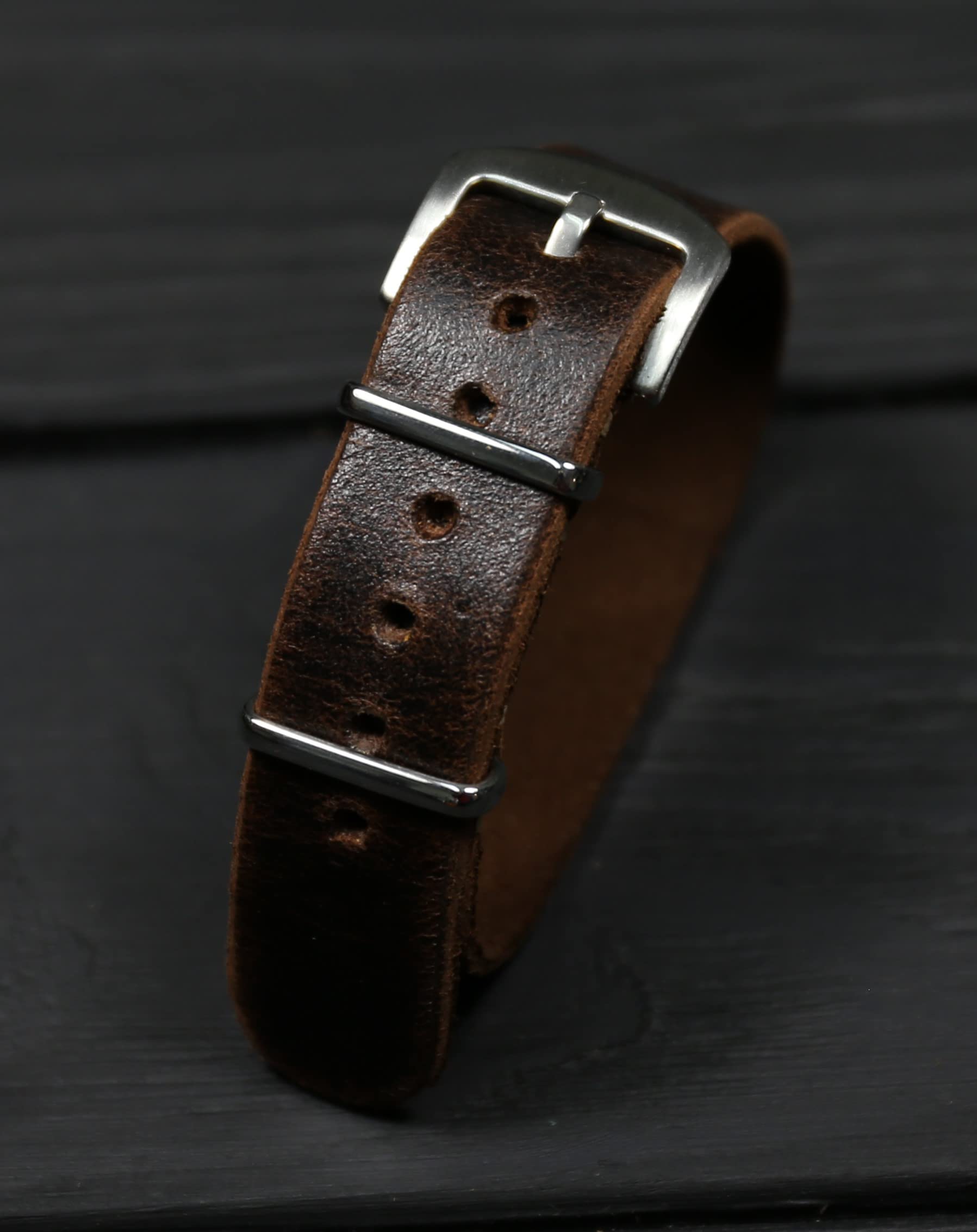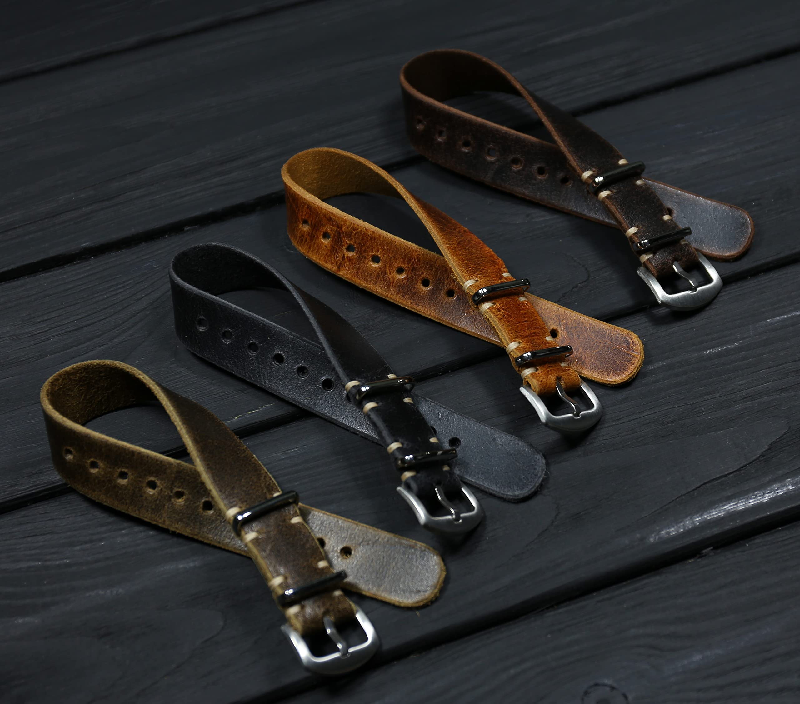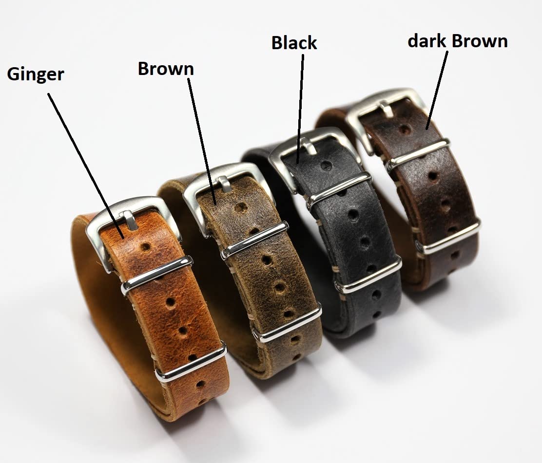 Description Watch straps from English luxury leather. A Single Pass band , Army style - Strap leather is carefully stitched with strong waxed beige thread made in Italy + stainless steel buckle . The bands are durable, soft and comfortable. This leather is produced by one of the oldest leather producers in England. In terms of its quality, when compared with a car, it will be a Mercedes. No one has ever been disappointed with a product made of this leather. LEATHER. Crazy Cow leather from the finest "Charles F Stead" tannery, UK HANDMADE. 100% crafted by hand from leather cutting to sewing by me COLOR: Brown and Dark brown. The color may slightly differ from photos due to your monitor settings. SPECIFICATION: Variation : strap size: 18mm, 20mm, 22mm, 24mm Rings: stainless steel rings Thread color: Beige Thickness: approx 1.9-2.00 mm !!! *Please message us if you are unsure what variation to take. STRAP LENGTH: size L - 280 mm , without buckle STRAP LENGTH: size M- 250 mm , without buckle *Please message us if you need assistance with your order! UNISEX. This strap can go with any watch (with a standard watch mount) you own and is a perfect fit for all genders. Best customized gift for those you care! Please don't hesitate to message us if you have any questions.