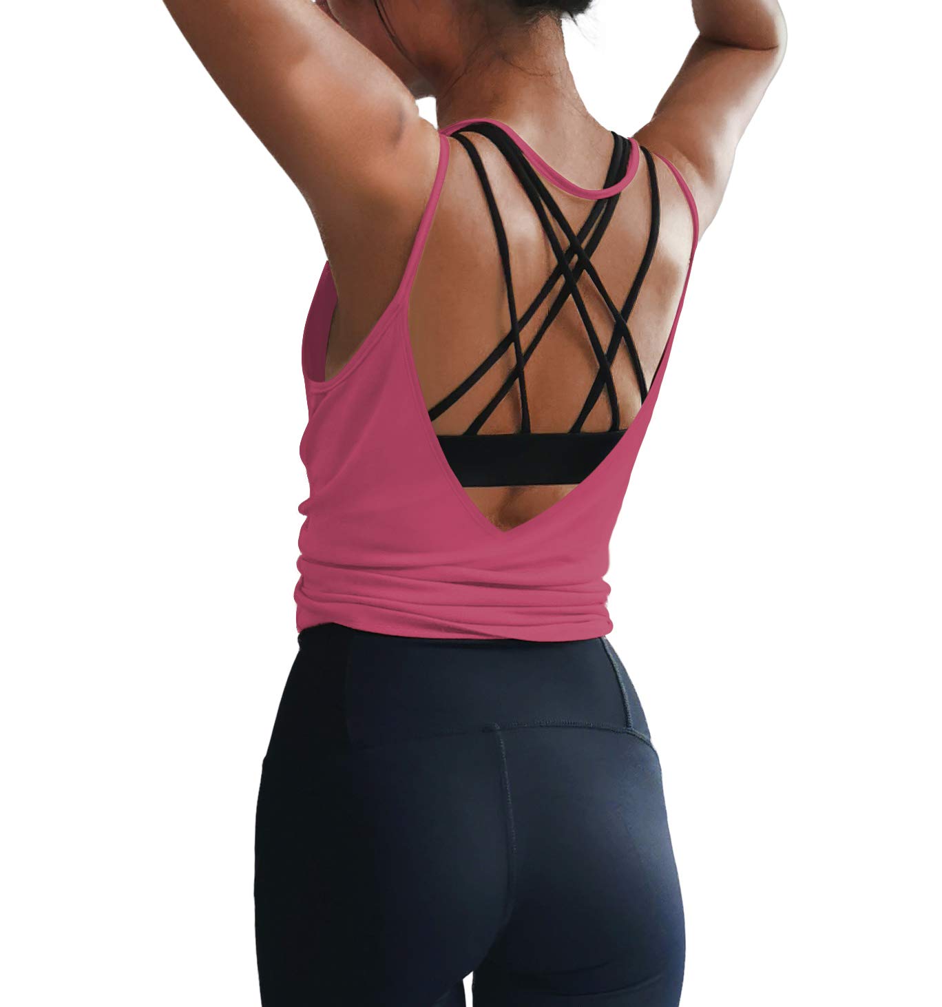 Design: Fashion cut with a v neck and v back, backless design with slender straps, show off your sexy charming back, this workout top made of soft and comfy fabric great for pair with yoga pants, leggings, shorts, skirts all types of everyday outfits