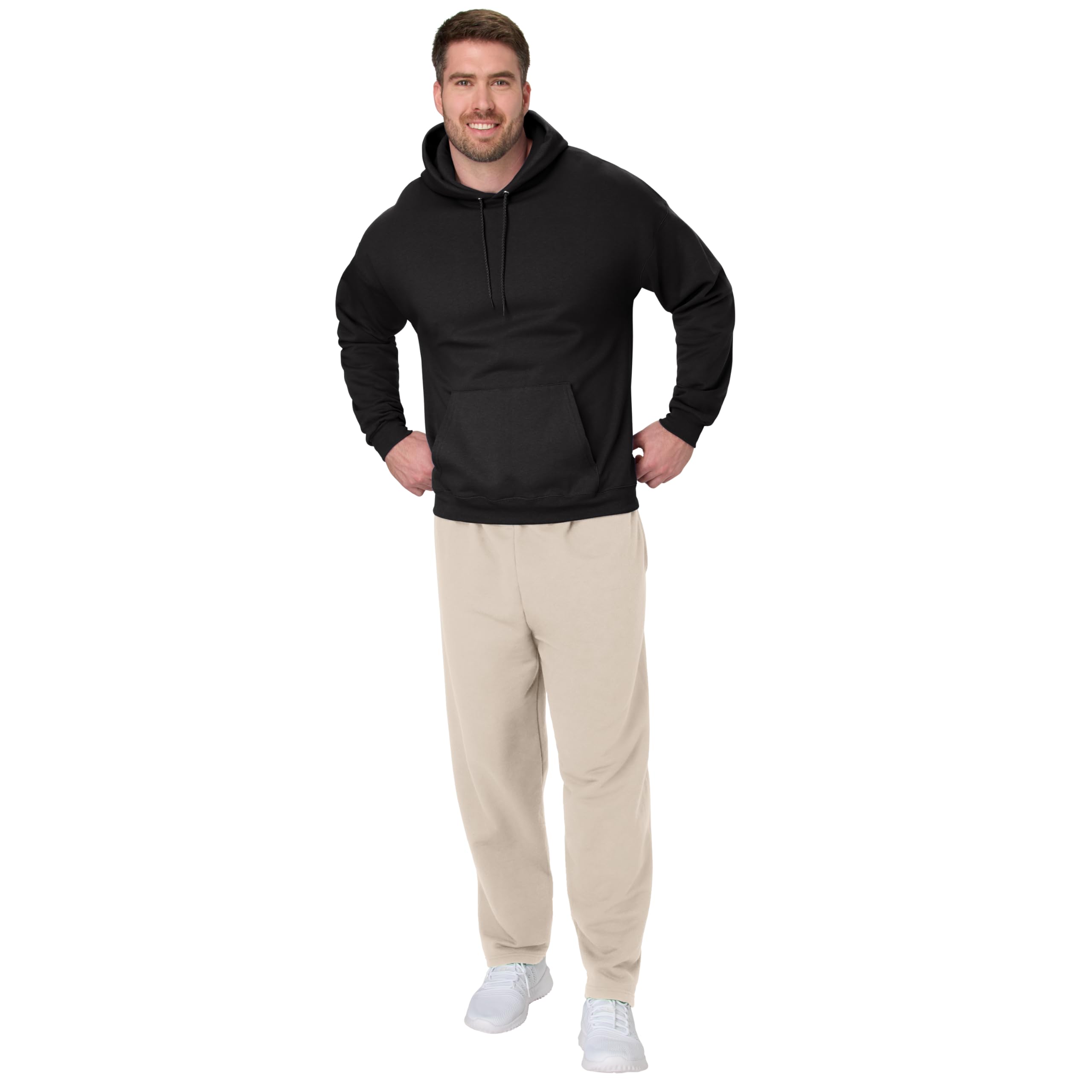 Description Have you heard of wearing your heart on your sleeve? Well, now you can wear your values on your legs with Hanes® EcoSmart® fleece sweatpants. These are plush fleece sweats you can feel good about buying and feel good about wearing. Hanes® EcoSmart® fleece is your new go-to wardrobe staple. Soft and plush, these drawstring-waist fleece joggers are made of mid-weight cotton/poly fleece with up to 5% of the poly fibers. The medium-weight fleece in these classic men's sweats is pill-resistant, super-soft, and made to keep its plush feel for a long time. The inside drawstring at the waist makes adjusting the fit a breeze. The relaxed fit is enhanced by straight legs with an open hem, and there are side-seam pockets for your essentials.