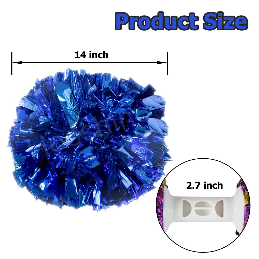 SUITABLE SIZE: The handle in the middle of pom poms is approx 2.7 inch,the whole length of cheer pom poms is about 14 inch.No matter toddlers or adults will like these shiny and fluffy pom poms at first sight