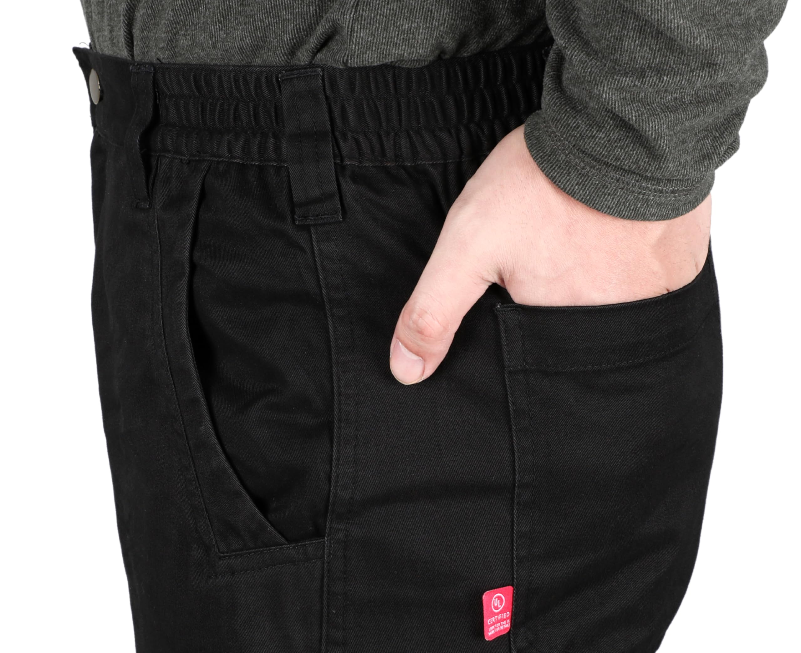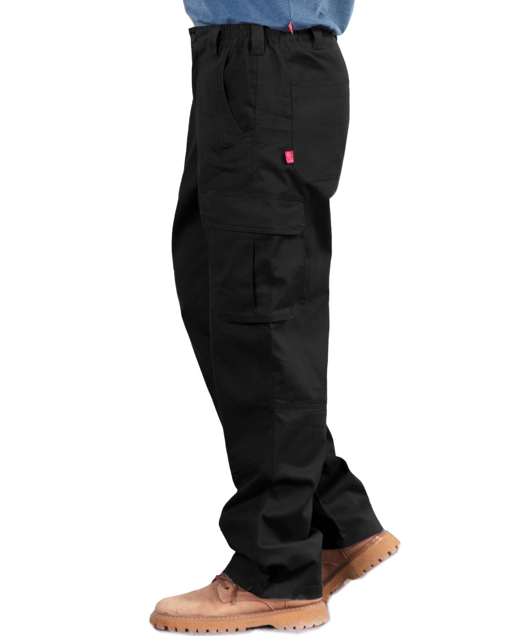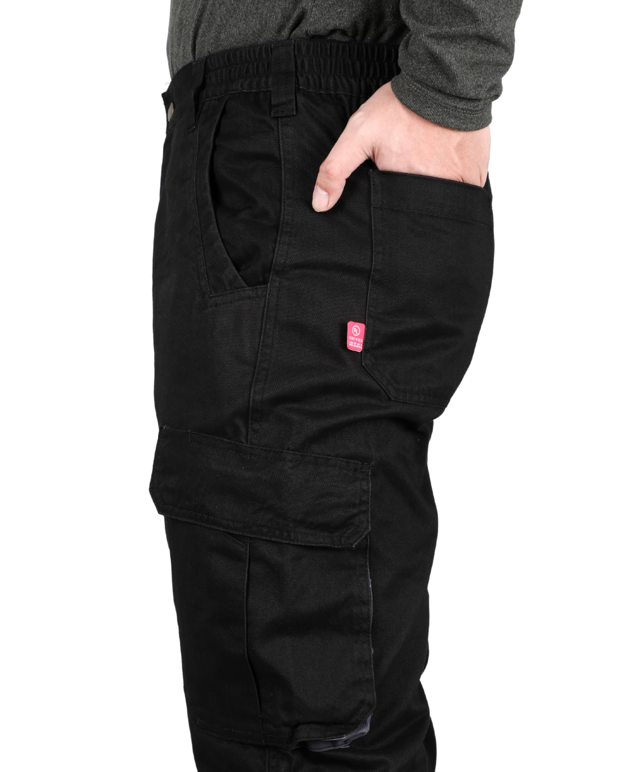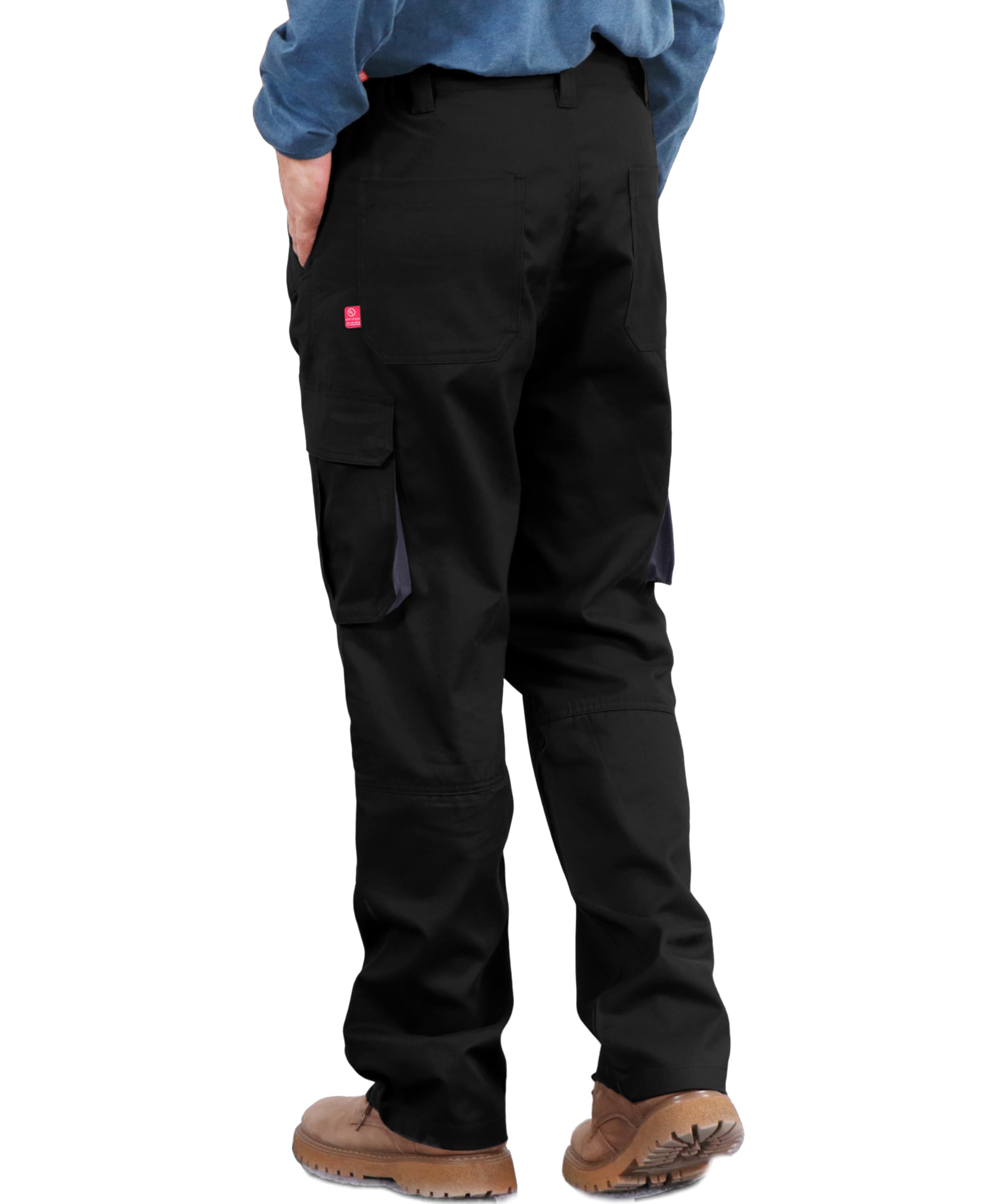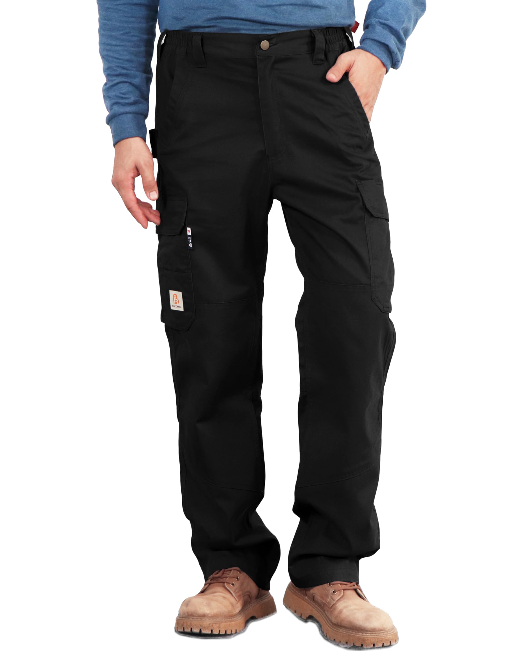 FASION AND COMFIT:This FR Work Pant has 7 Pockets and Elstic waist band, Provides A Perfect And Comfortable Relaxed Fit(Boot Cut). Double front fabric on knee.Double needle stitching on outseam. Left and right enlarge cargo pockets at the thighs with flaps to keep items secure.Two back cargo pockets help yop holding more stuff.We Did Prewash/ Preshrunk And Wrinkle-Free.Machine Wash No Shrink!