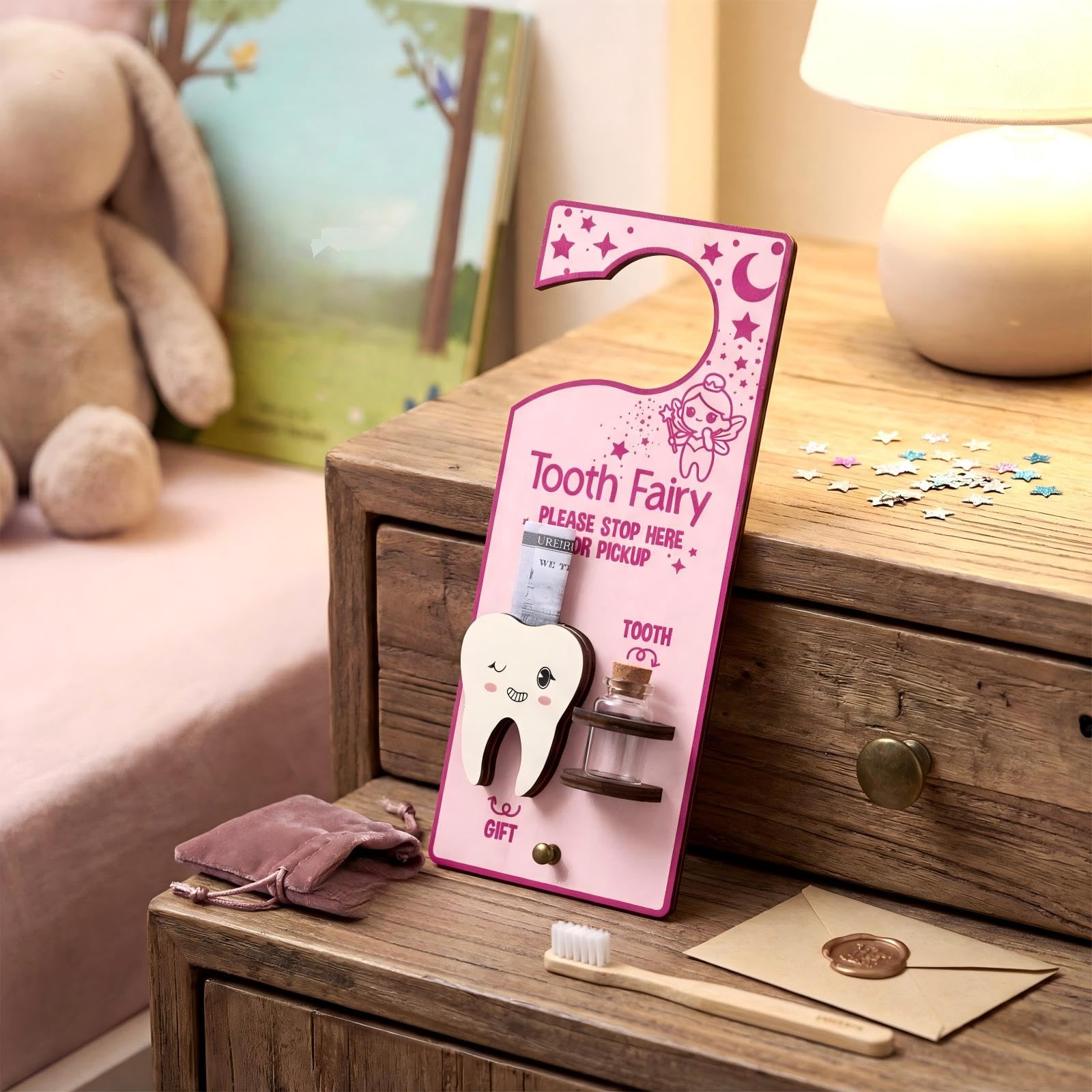 Versatility and Applicability: not only does this tooth fairy kit assist in encouraging good dental habits among kids, it also serves as a delightful ornament, making it widely applicable in various scenarios such as in children's rooms, playrooms, classrooms and more