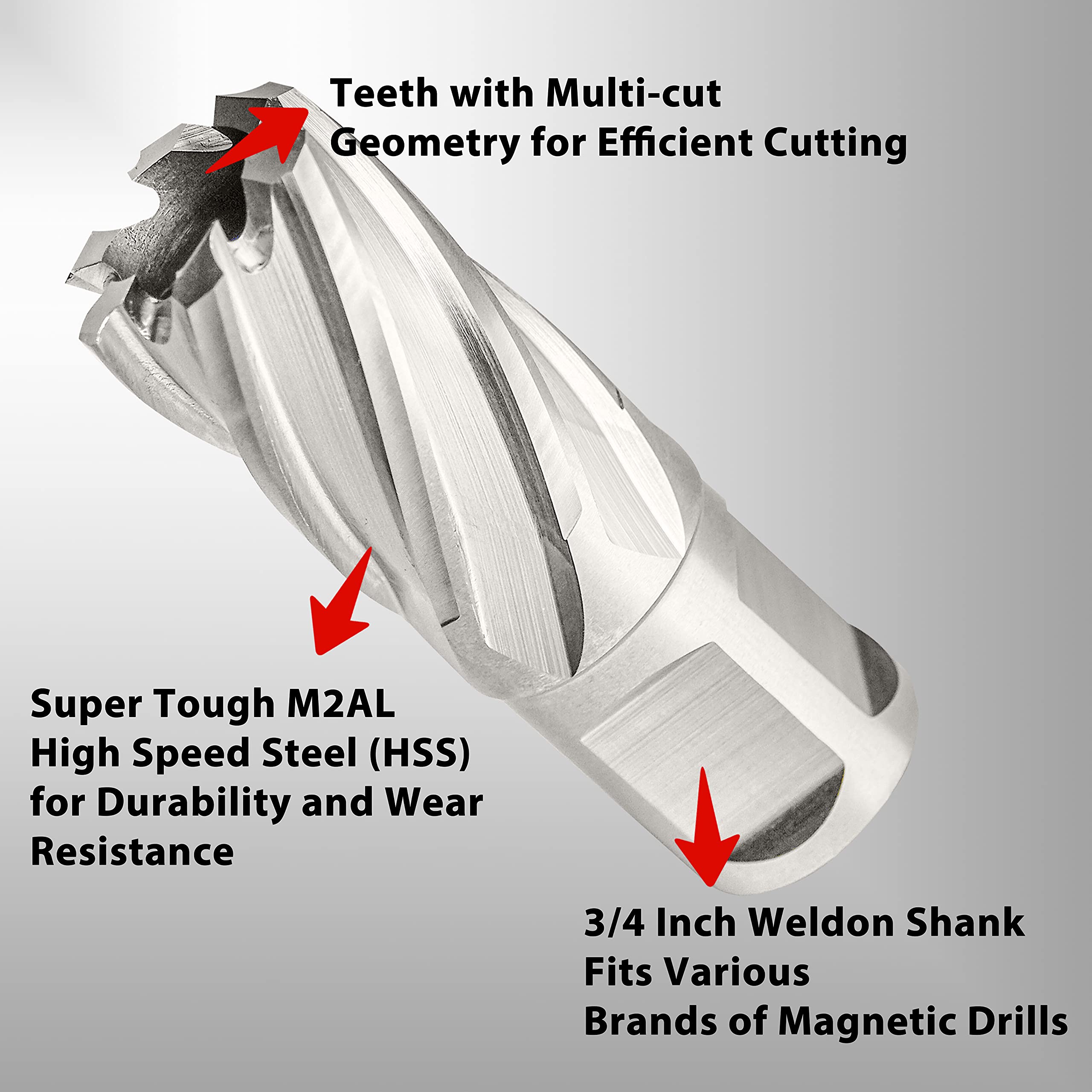 Annular cutters made with super tough M2AL high speed steel (HSS) for durability, wear resistance, high efficiency and superior service life