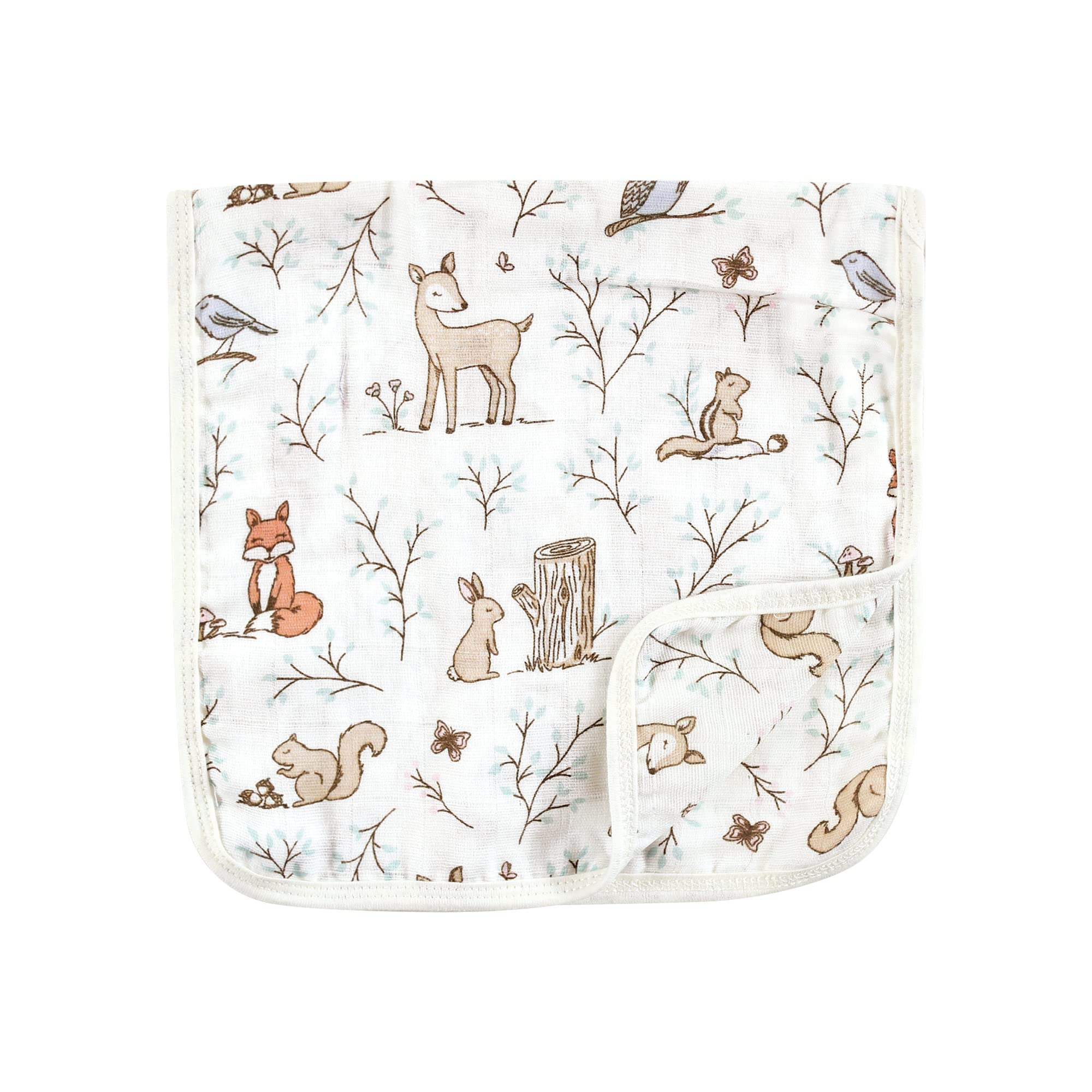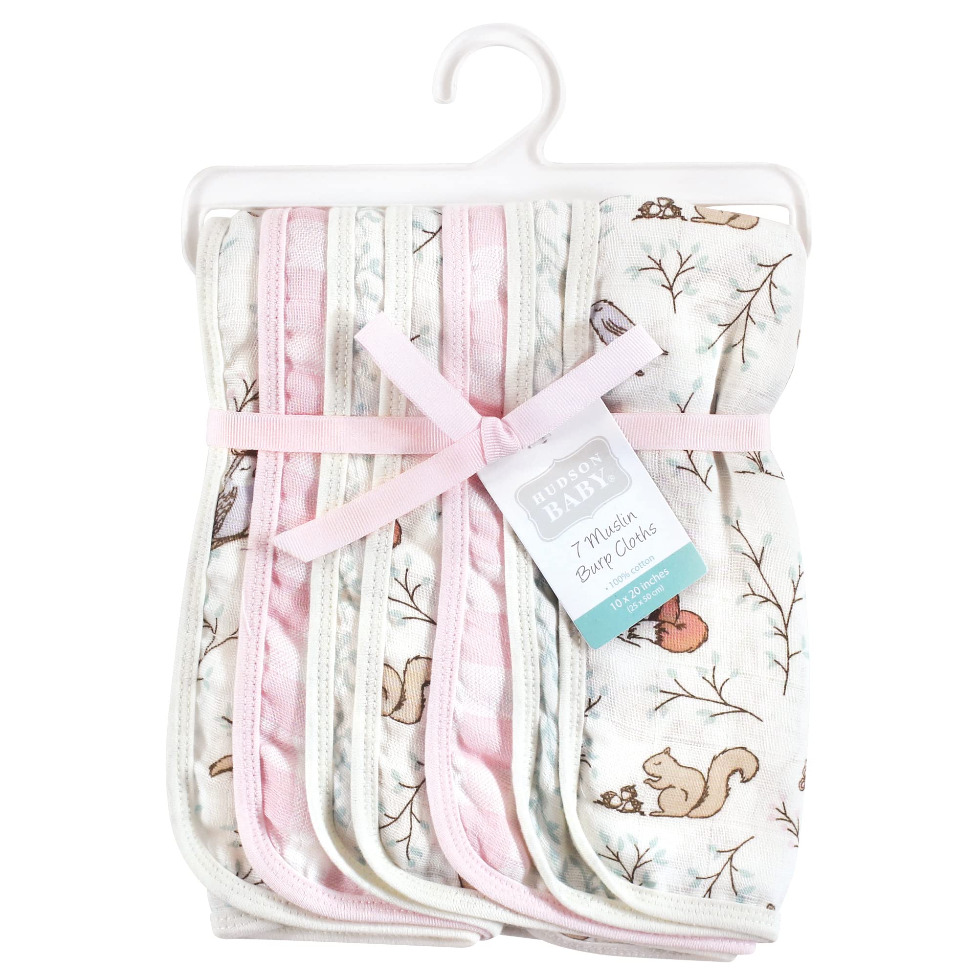 Set includes muslin cotton burp cloths