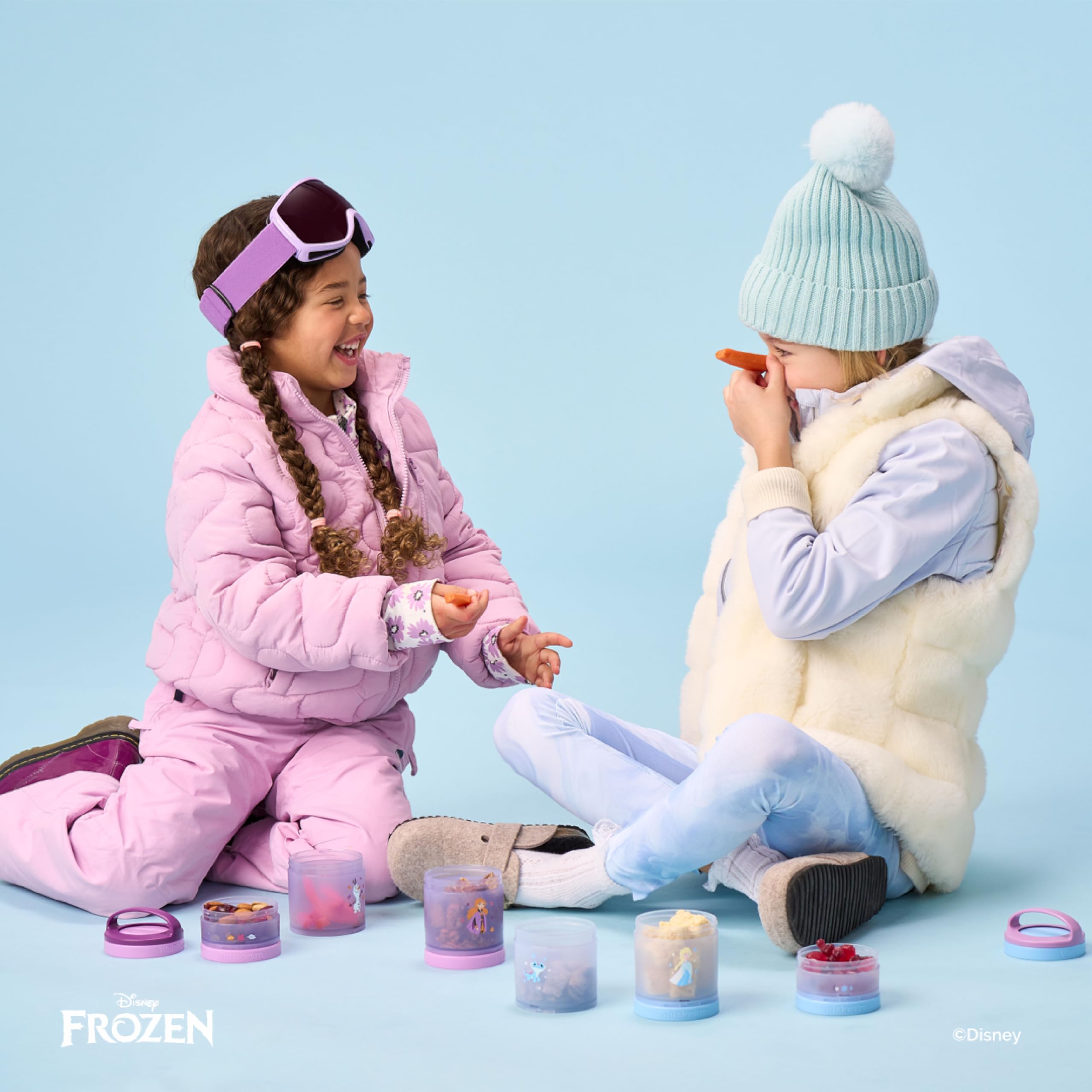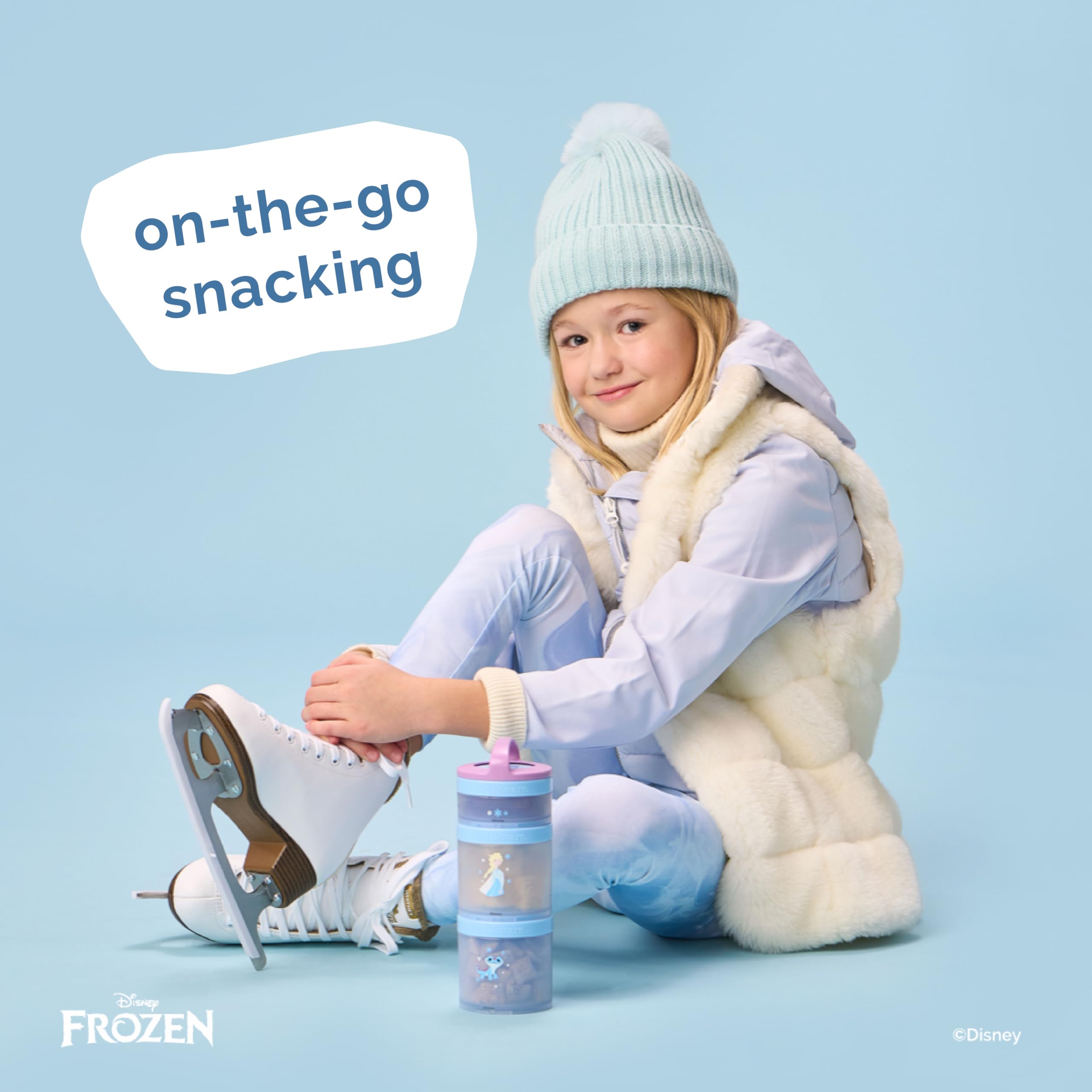 Durable, stackable snacking containers designed to make eating easy, fun, and mess free