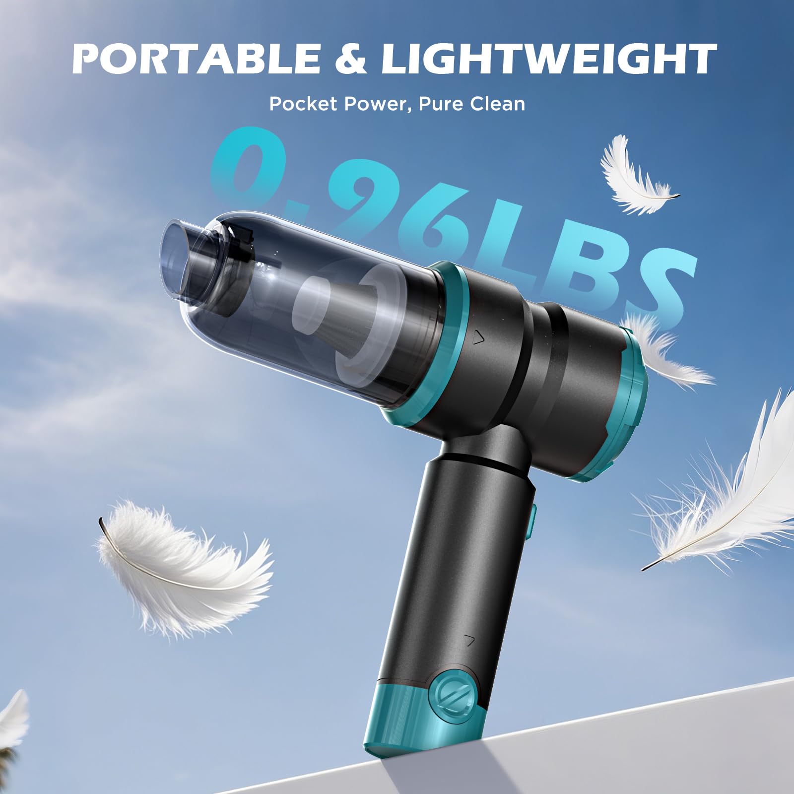 Lightweight and Portable:Weighing only 0.96 pounds, this vacuum makes the cleaning process freer and easier. Its cordless design is compact enough to store in your car glove box, trunk or backpack, making it perfect for cleaning on the go