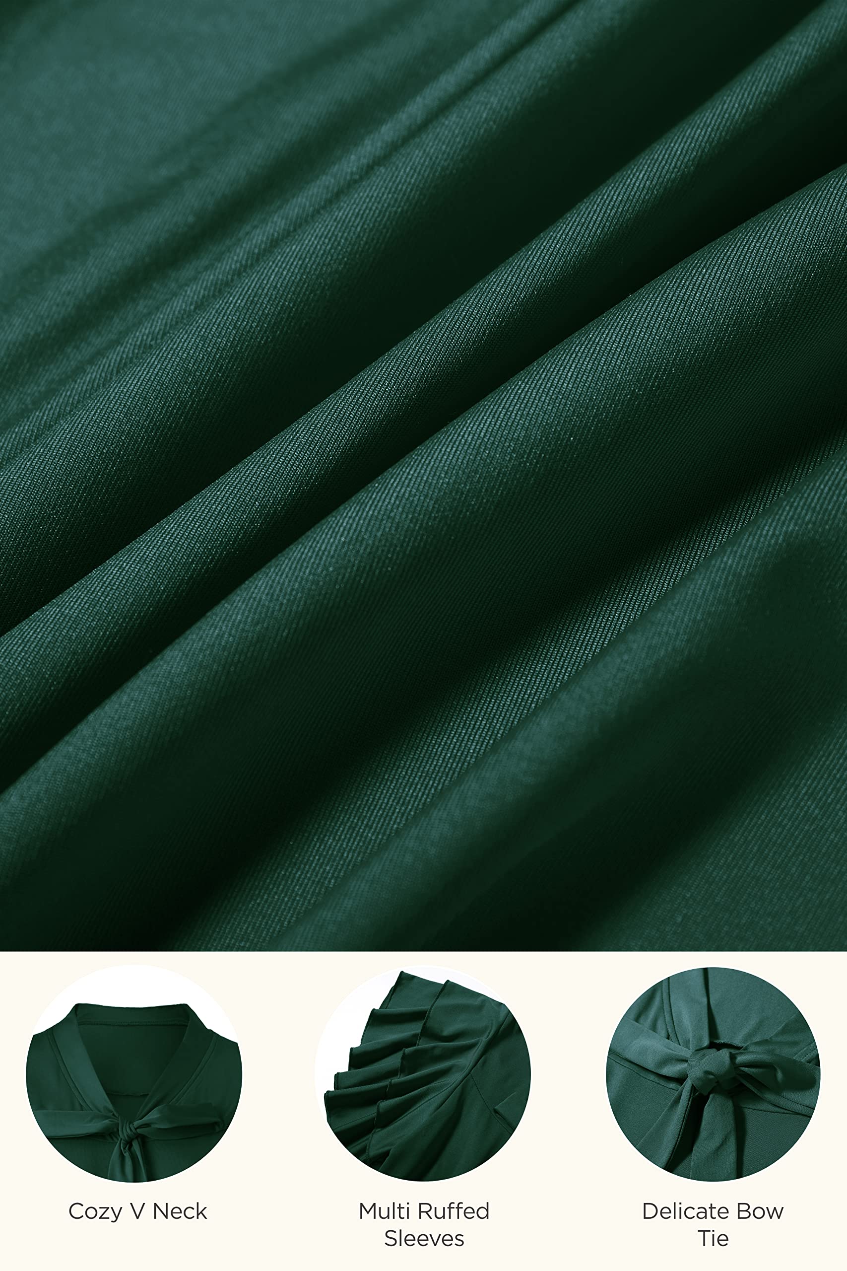 Features: multi-layered ruffle design at the cuffs to slim the arm line and look pretty and elegant; fitted waist to highlight your fabulous figure; the right length to look tall and charming.