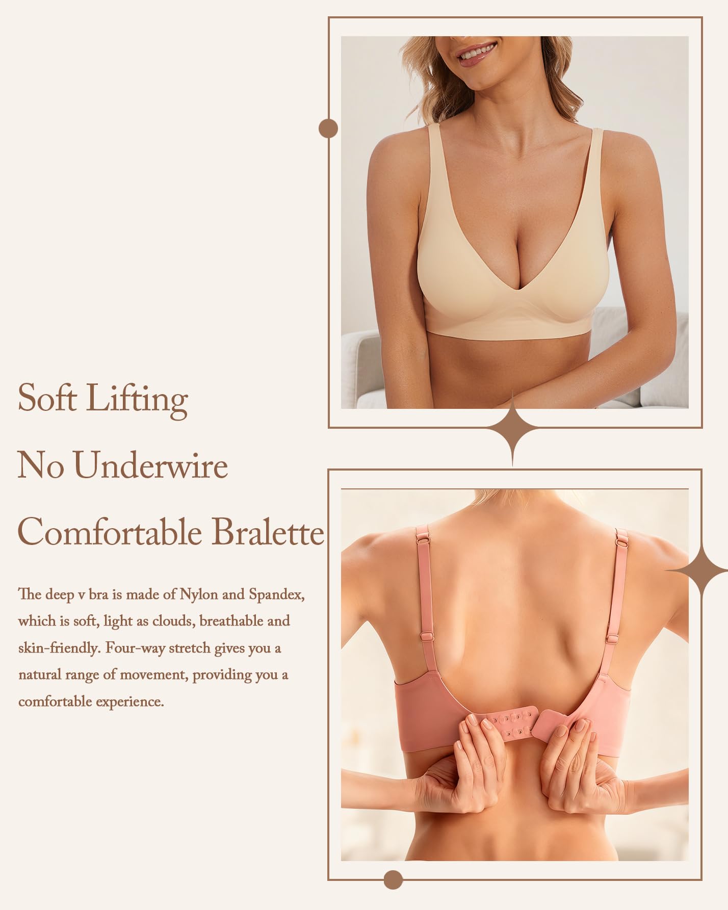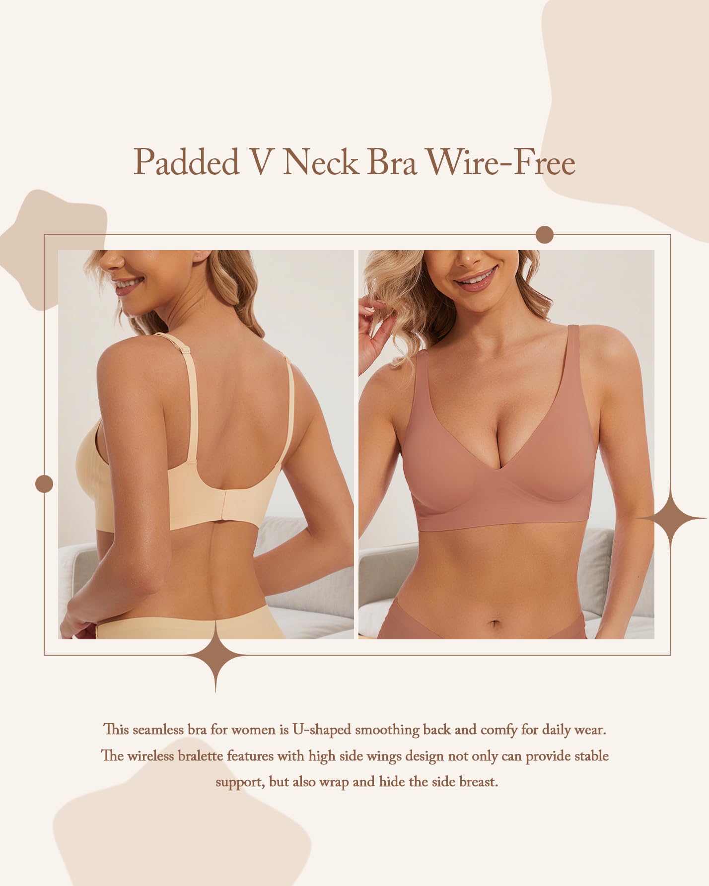 [Versatile Occasion & All Match - Bralettes for Women]: This wireless bra is an ideal choice for date, prom, party, home and casual daily match; wearing our v neck bra under top, t-shirt or dress, enjoy a seamless look that will complement any outfit
