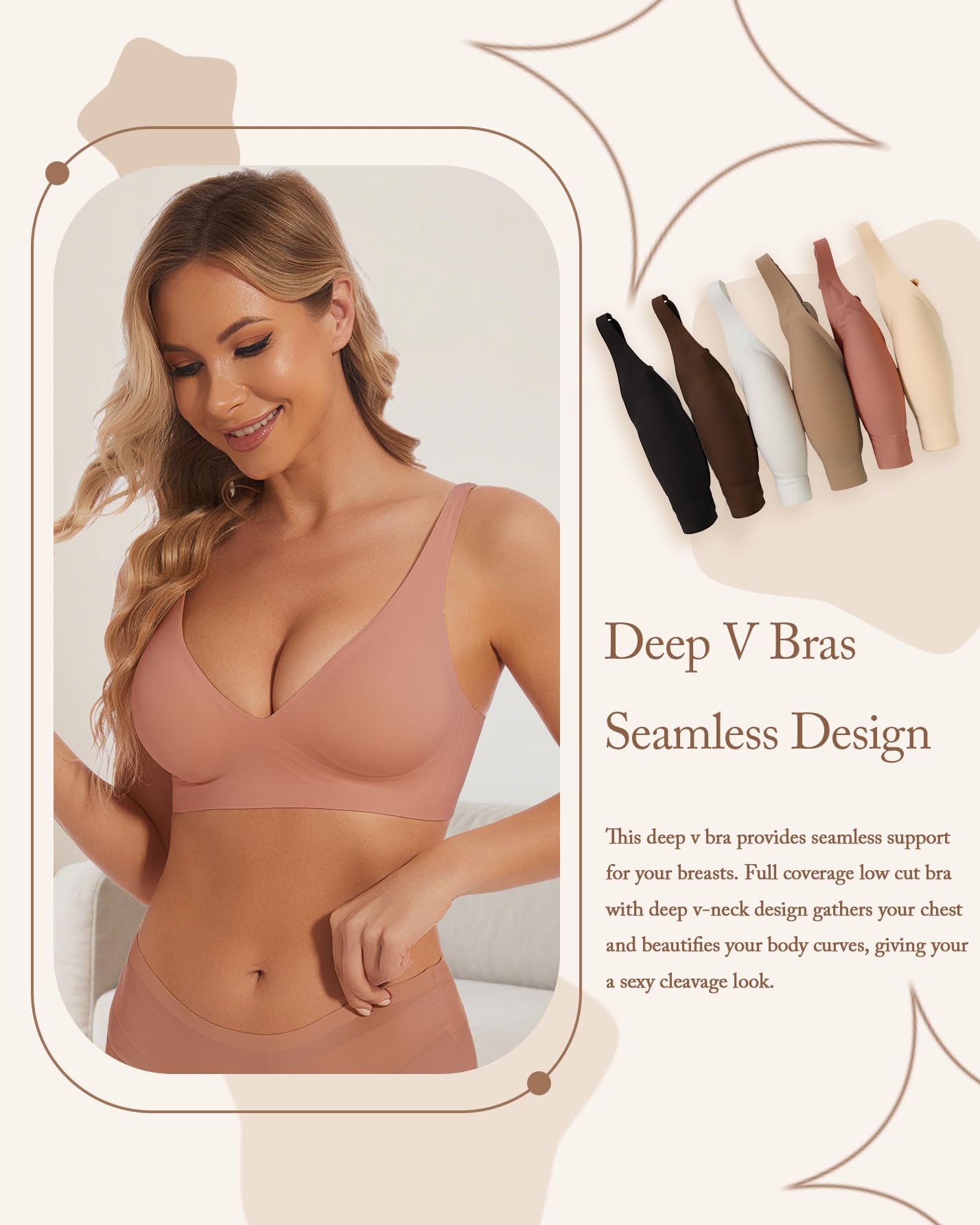 [Low Cut Bra for Deep V Neck - Slightly Push Up Effect]: This low cut bra provides seamless support for your breasts; full coverage bra with deep V-neck design gathers your chest and beautifies your body curves, giving you sexy cleavage look