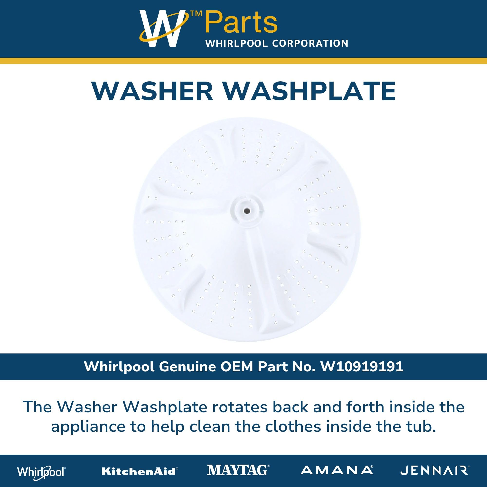REPLACEMENT PART NUMBERS: W10919191 Washer Washplate replaces the part numbers W10680219