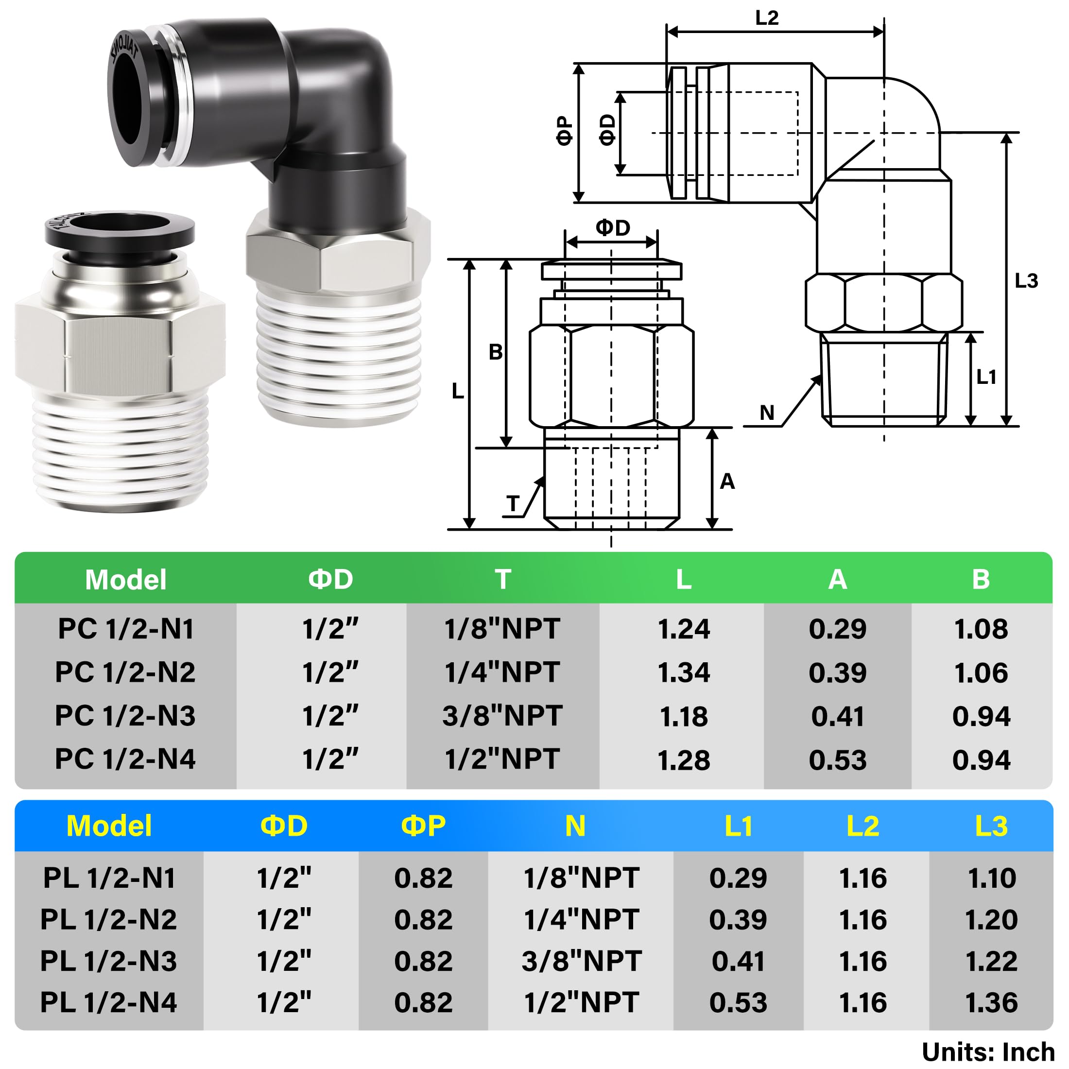 【Product Name】Elbow and Straight Push-in Connect Fittings