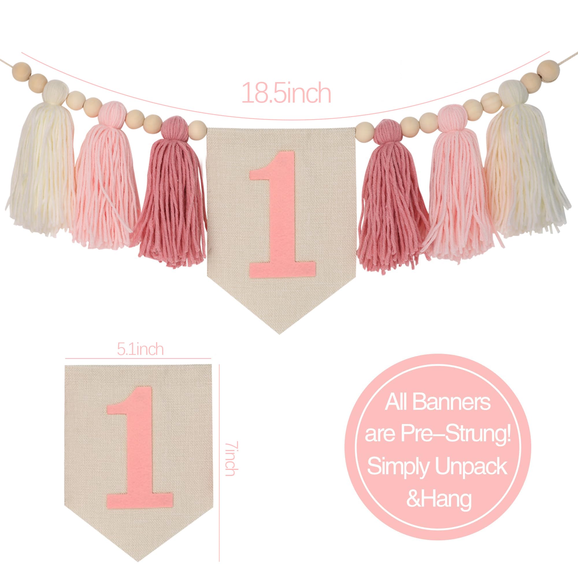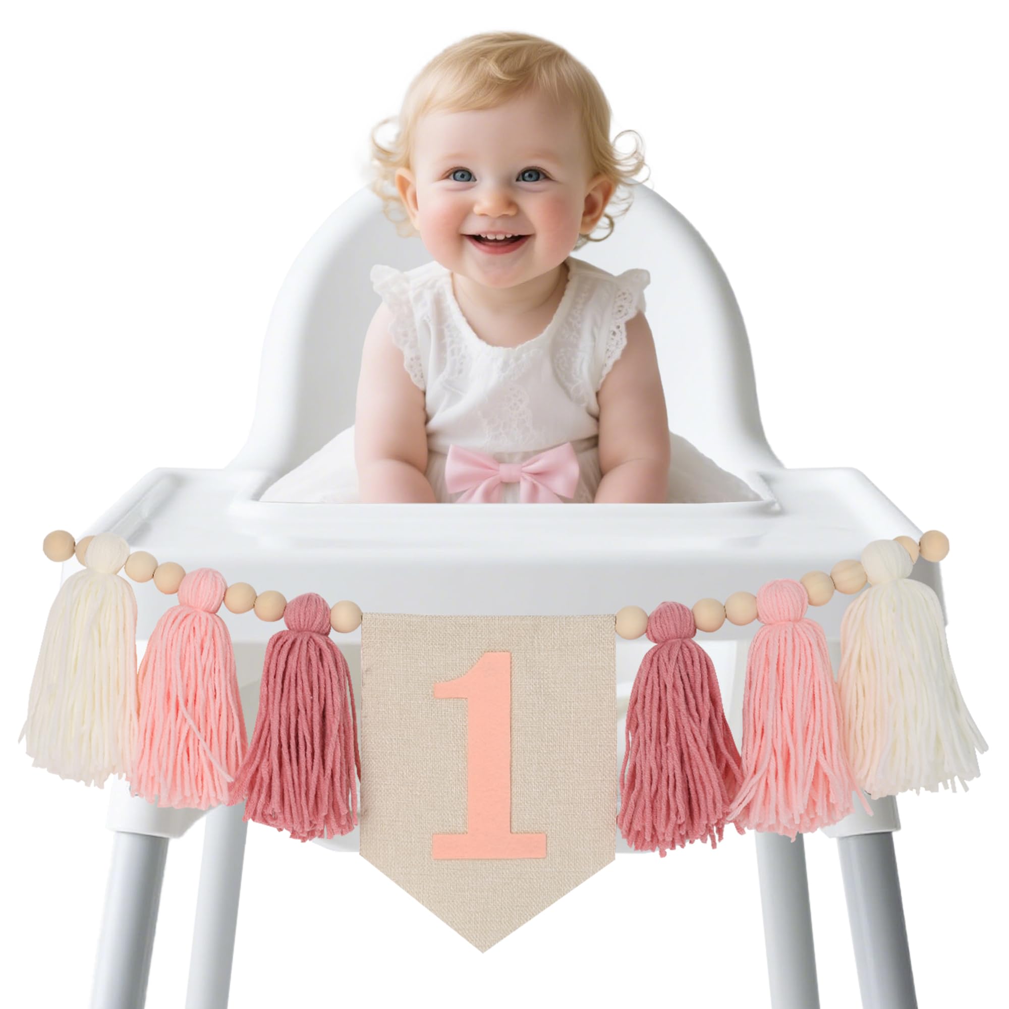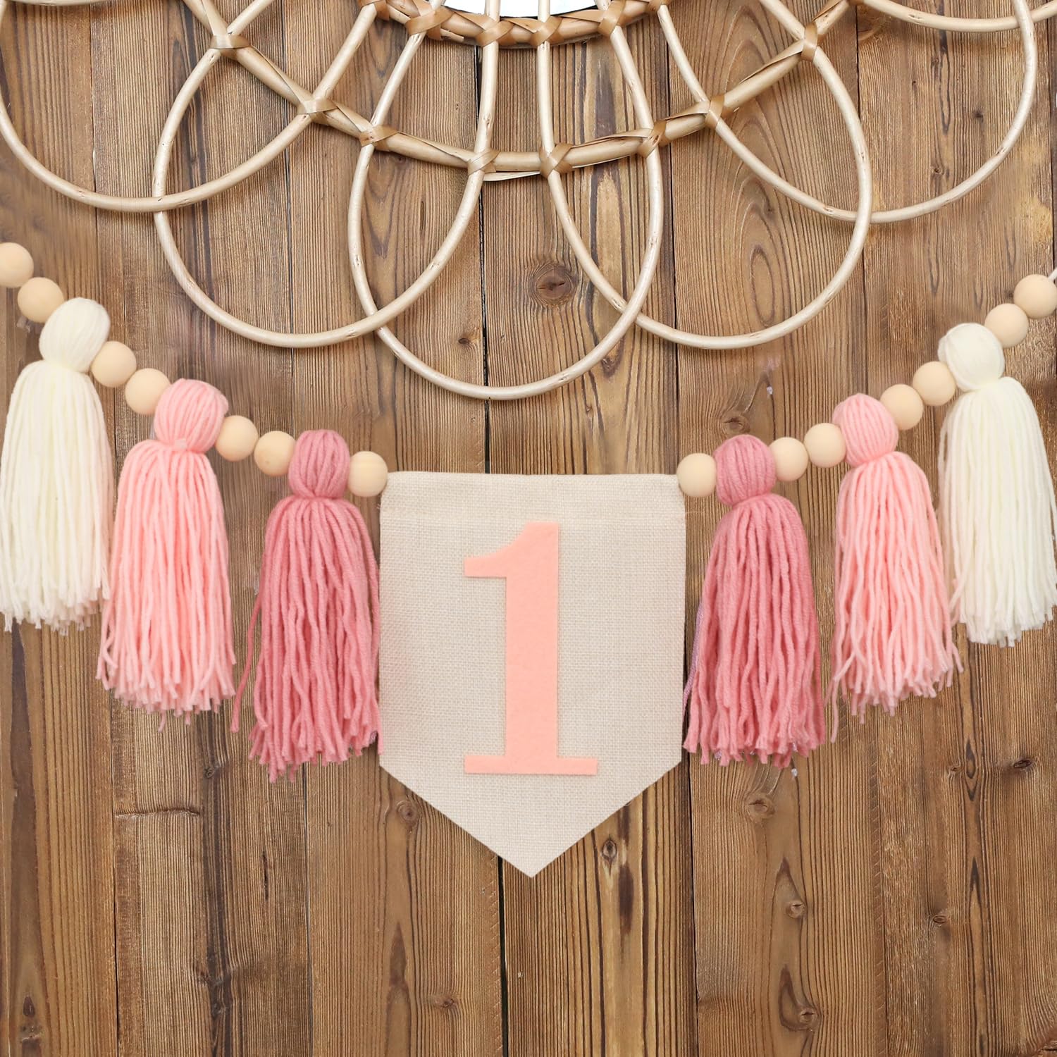 UNIQUE PRODUCT DESIGN: Our 1st birthday high chair banner girl is designed with soft tassel and wood beads; the baby party decorations will add a touch of elegance and fun to your baby's first birthday party; make your little baby the center of attention on this special day