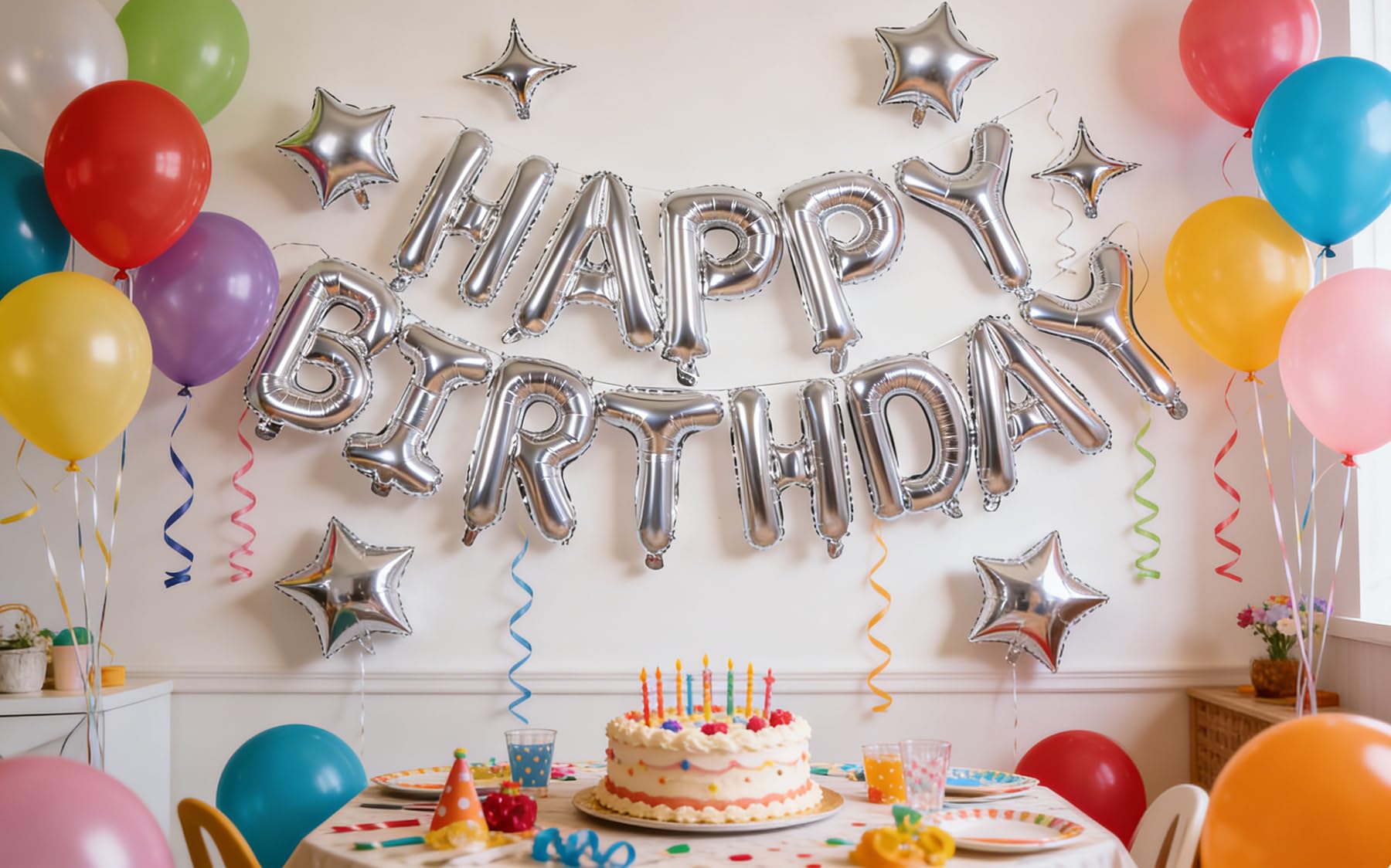 【Easy to Use】Use The Plastic Straw In The Packaging to Inflate The Balloon (Or Use an Inflation Pump, Which Needs To Be Configured By Oneself). After Inflation, You Can Use The Ribbon In The Packaging To Hang The Words "Happy Birthday" On Walls, Windows, Curtains, Ceilings, Backyard, Or Any Other Place You Think Will Look Good, Whether Indoors Or Outdoors.