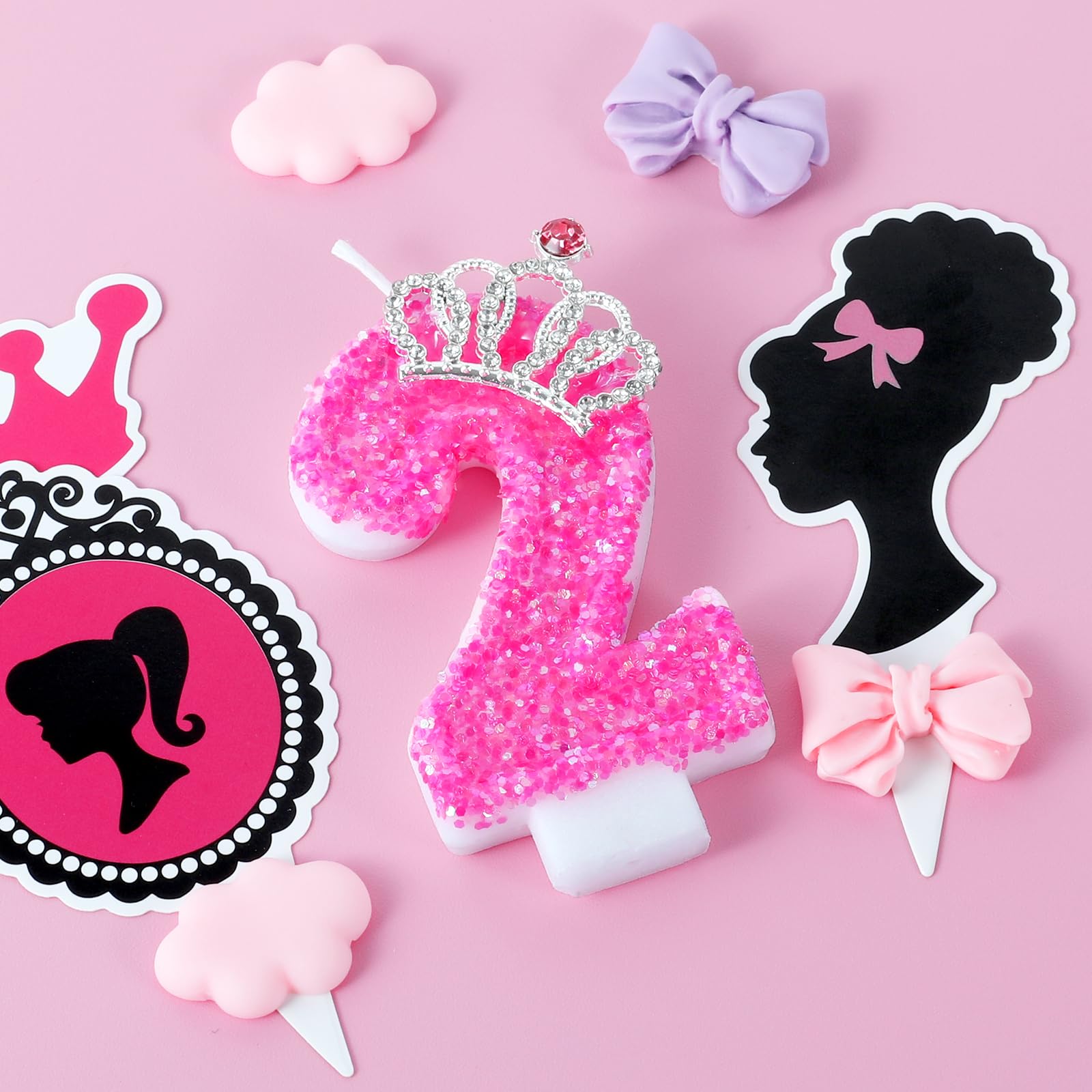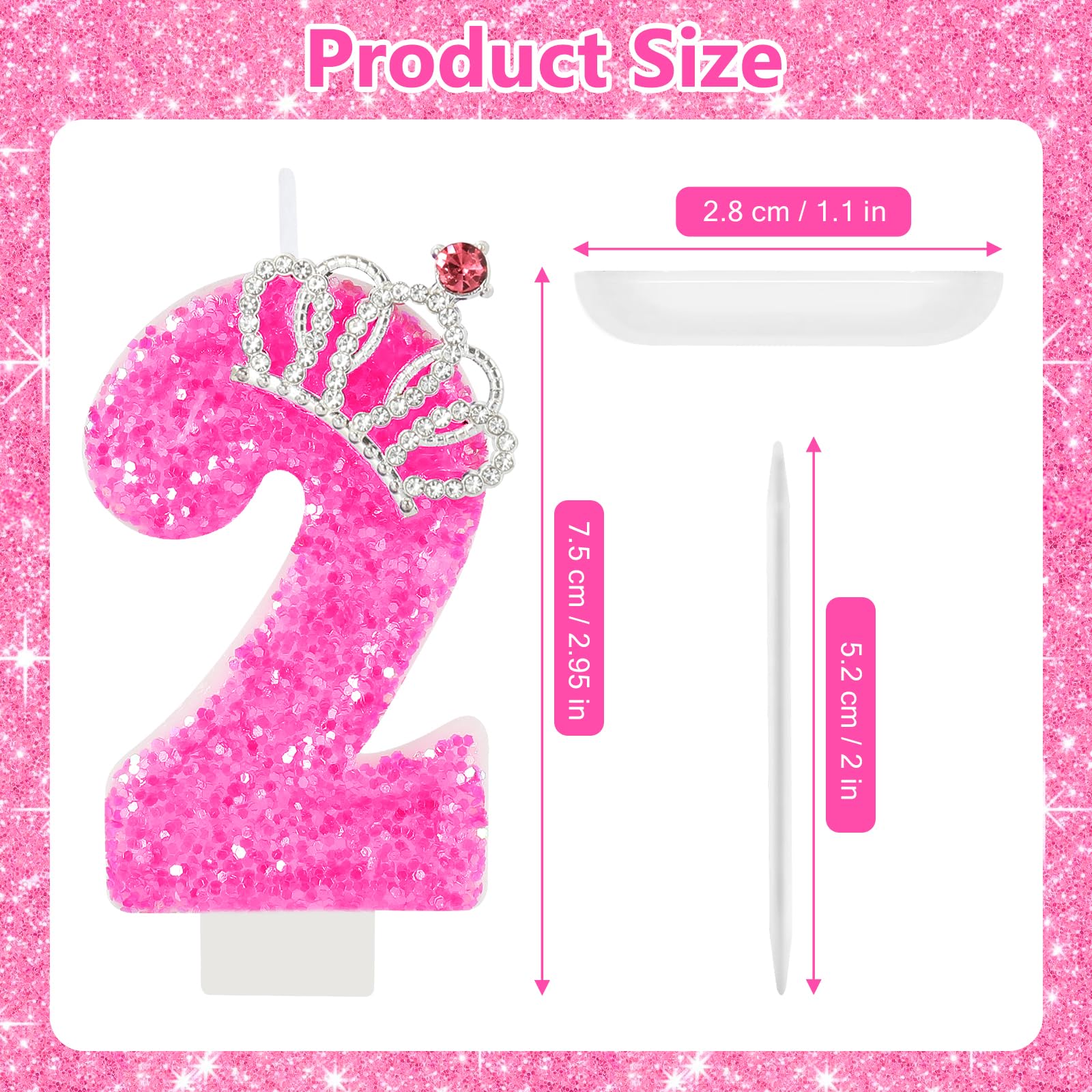 【Royal Elegance】Adorned with a exquisite crown and dazzling rhinestones, our hot pink number candles sparkle with luxury, adding a noble touch to your pink dreams party, singer-themed celebration, or any special gathering.
