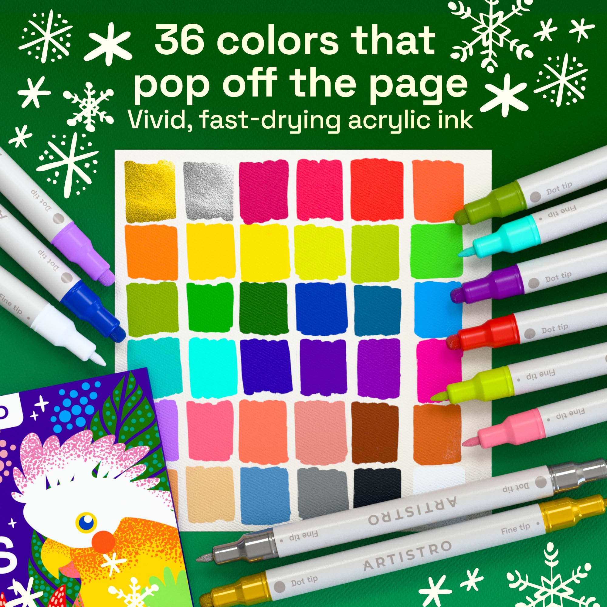 DUAL TIP FOR FINE + BOLD WORK: Each pen features a 1 mm fine tip for precise lines and a 1–5 mm dot tip for bold strokes and large-area coloring. Seamlessly switch between detailed outlines and vibrant coverage.