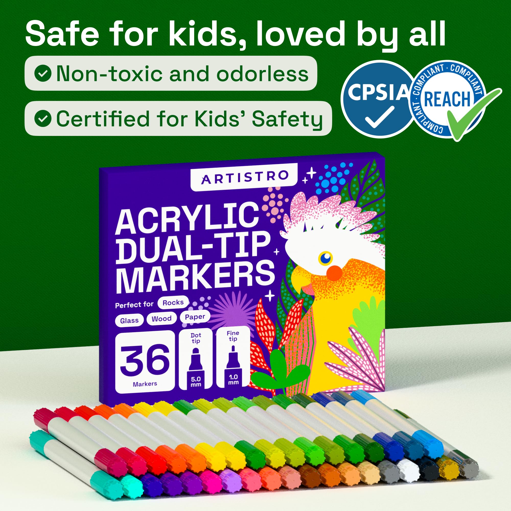SAFE, NON-TOXIC, BEGINNER FRIENDLY: This pack conforms to ASTM D-4236 standards. It's odorless and safe for kids, teens, and adults, and perfect for classrooms, studios, beginners & pros, or hobby craft nights at home. CONVENIENT HORIZONTAL STORAGE FOR LONGEVITY: Store markers horizontally with caps tightly closed to maintain ink quality and flow. This tip ensures your markers are always ready for smooth, vibrant strokes