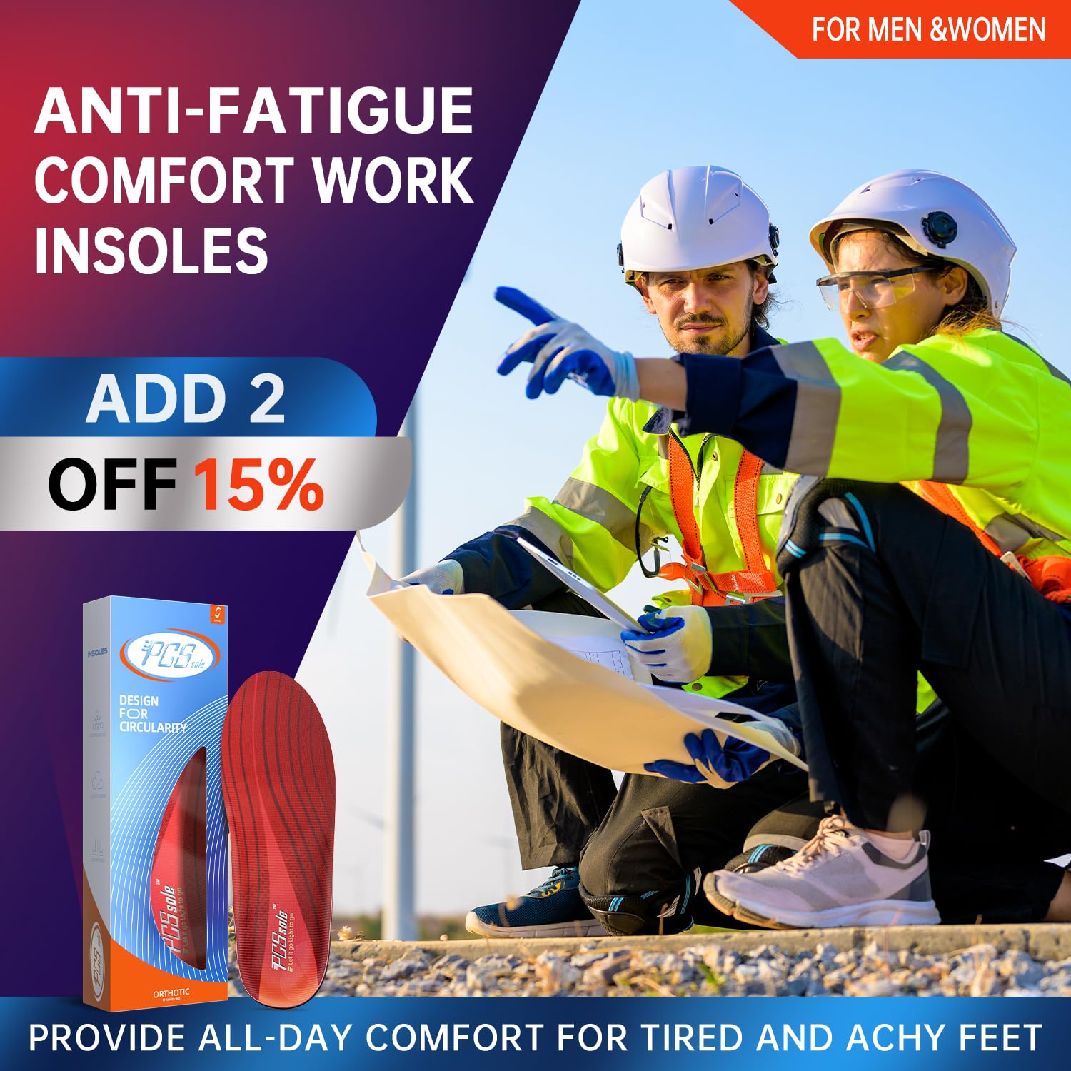 ANTI-FATIGUE ORTHOTIC WORK INSOLES: Orthotic work insoles have the unique combination of a cushioning layer, optimal arch support, deep U-cup heel, and shock-absorbing, cushioning pads.Inserts for better foot feeling while working.They help to reduce tiredness and discomfort to the legs, knees, and feet caused by standing for long periods on hard surfaces.