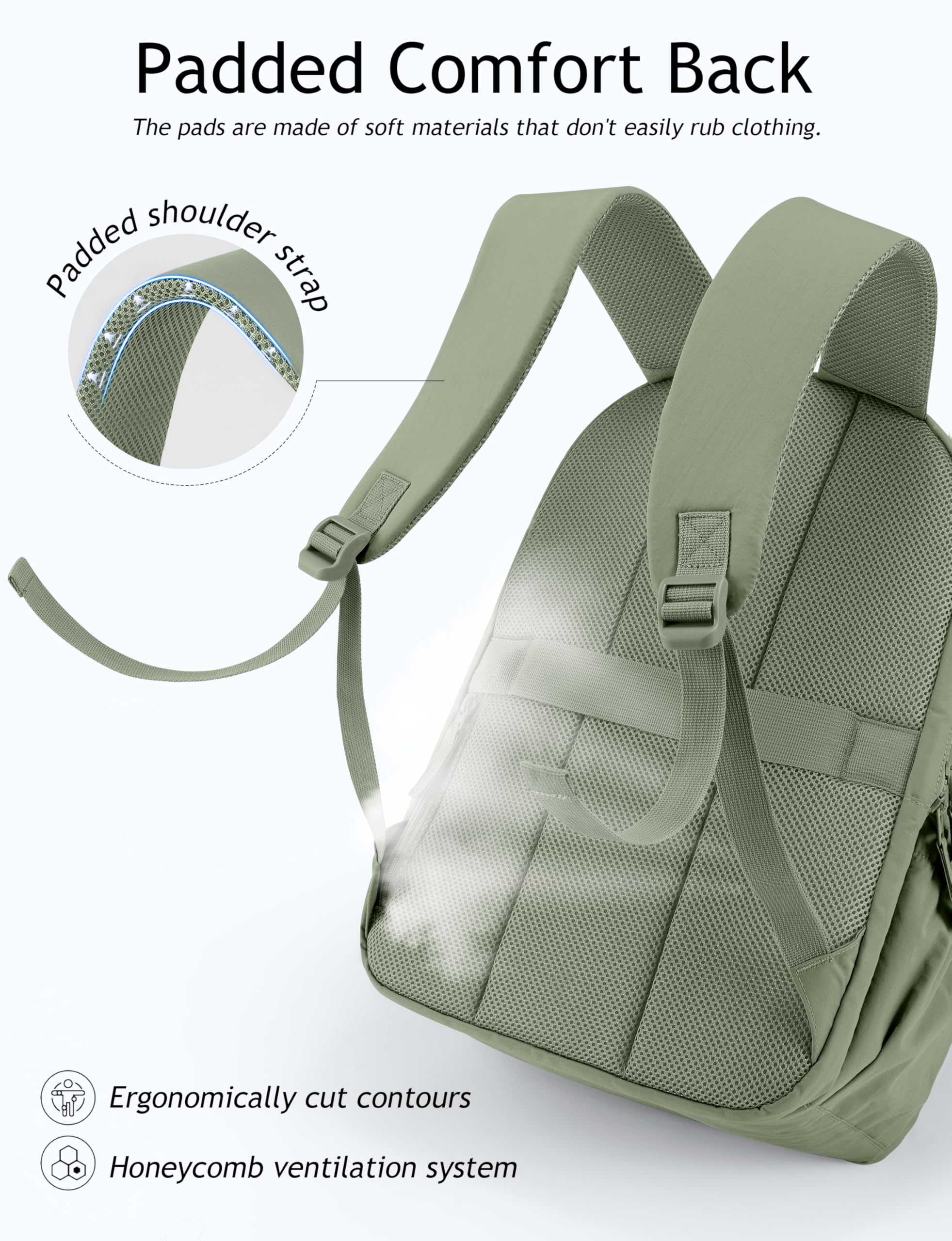 ERGONOMIC SUPPORT FOR YOUR BACK: Mesh-padded shoulder straps relieve the pressure on your shoulders and keep you cool, providing wear comfort. The back luggage strap of the travel backpack is easy to transport with a suitcase.
