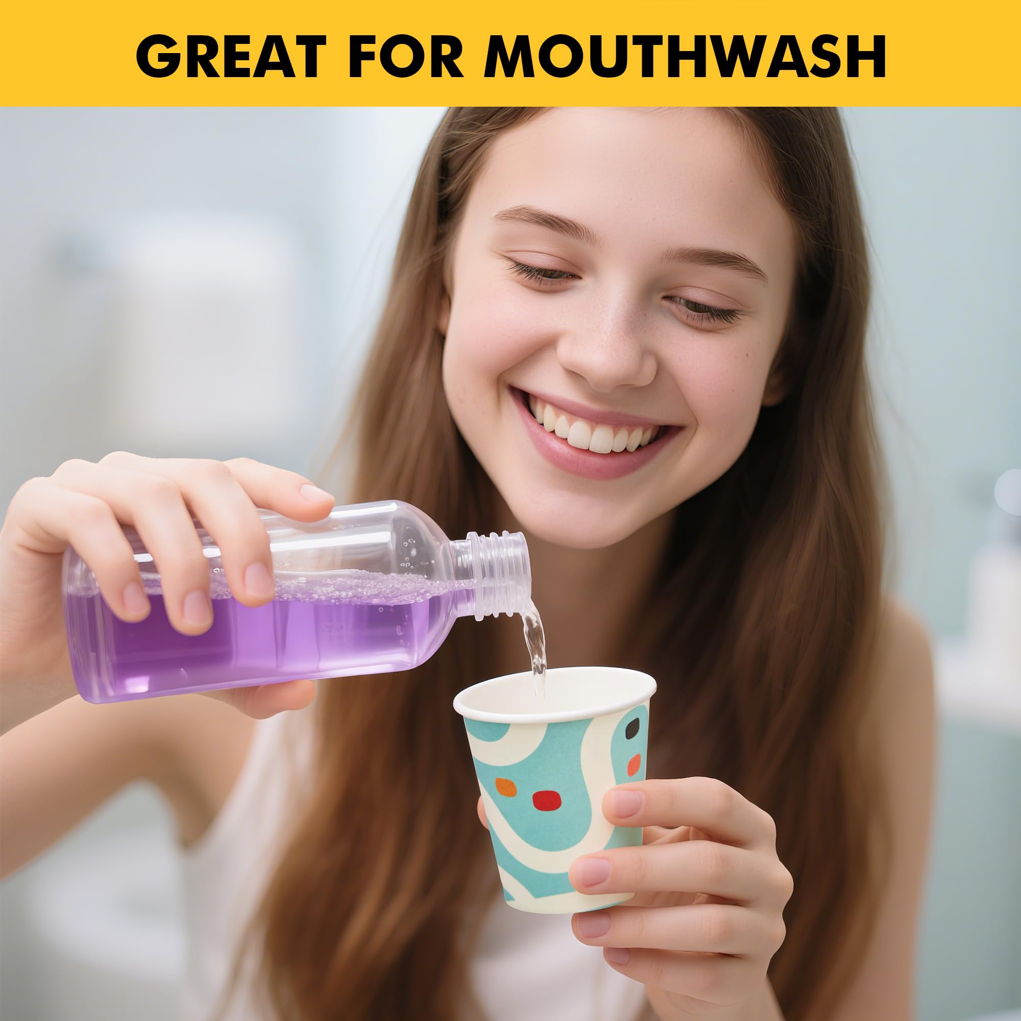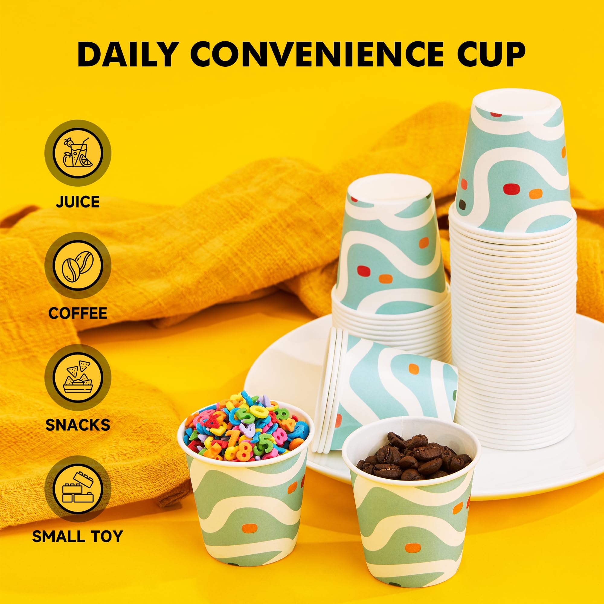 NOT LEAK, DURABLE: Tiny 3oz paper cups are perfect for mouthwash cups, espresso cups, medicine cups, market tasting cups, rinse cups, drinking cups, snack cup