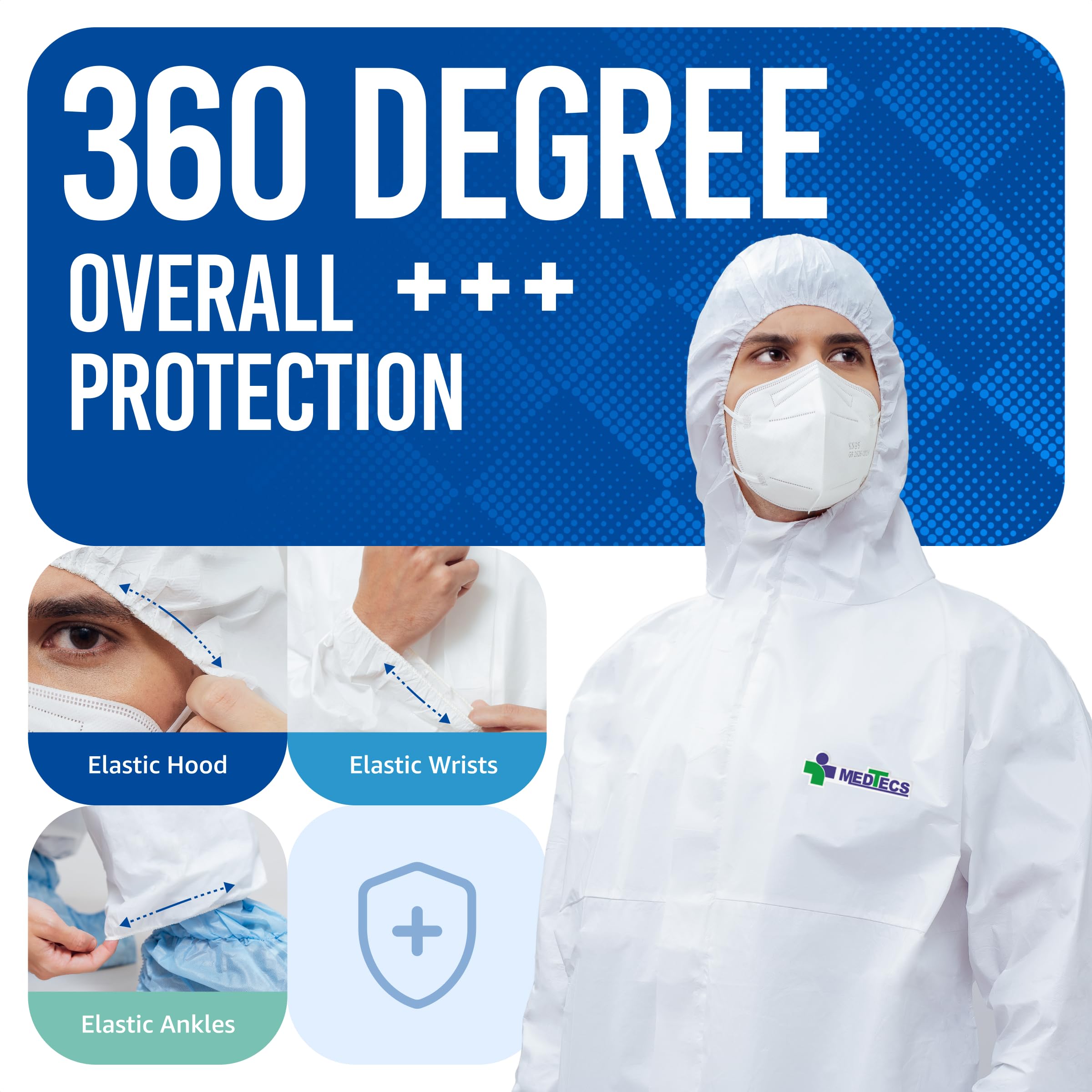 【360 Degree Overall Protection】With elastic hood, elastic wrists, and elastic ankles, the coveralls provide a snug fit and reliable protection from harmful particles. Each coverall has a front zipper for easy on and off.