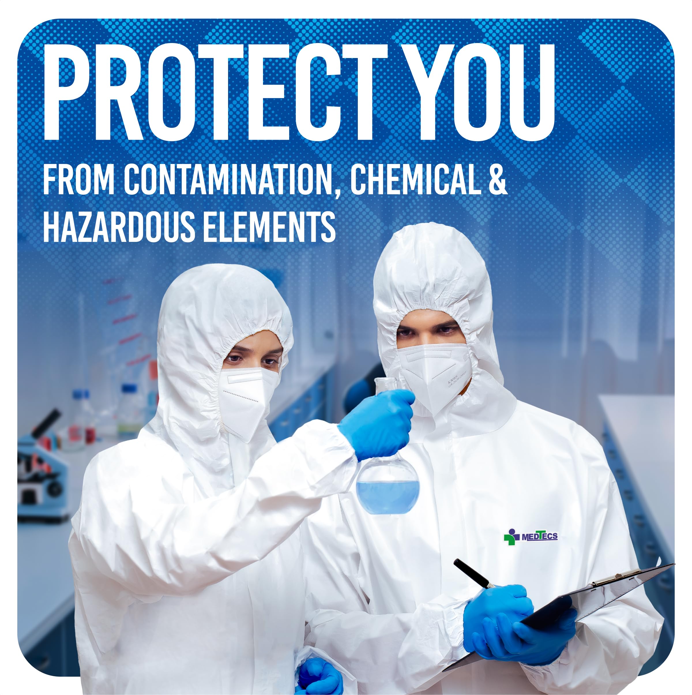 【Enhanced the Workers' Range of Motion】Full protection, high durability and flexibility allow protective coveralls to provide a more comfortable range of motion for workers.This coverall is available individually in sizes from 5'4" to 6'7".