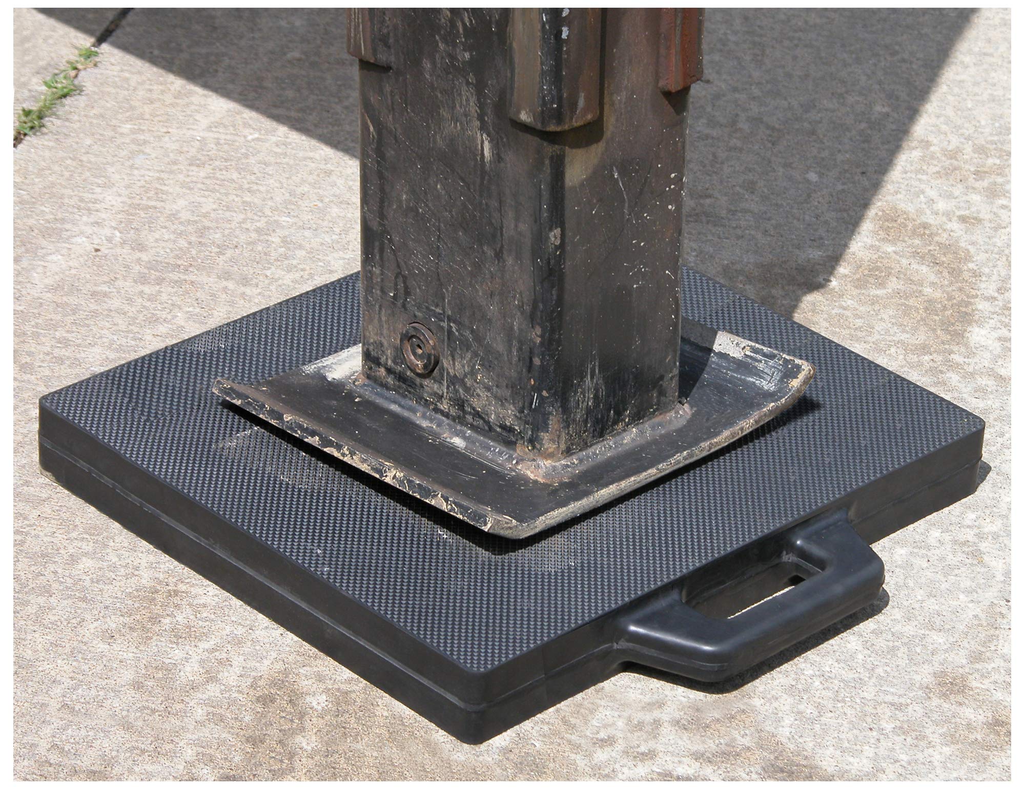 SURFACE PROTECTION YOU CAN TRUST: 24 x 24 in rubber outrigger pad distributes weight evenly to protect concrete, asphalt, paving, and soil from cracks, gouges, and sinking under heavy loads—helping crews work confidently without surface damage.