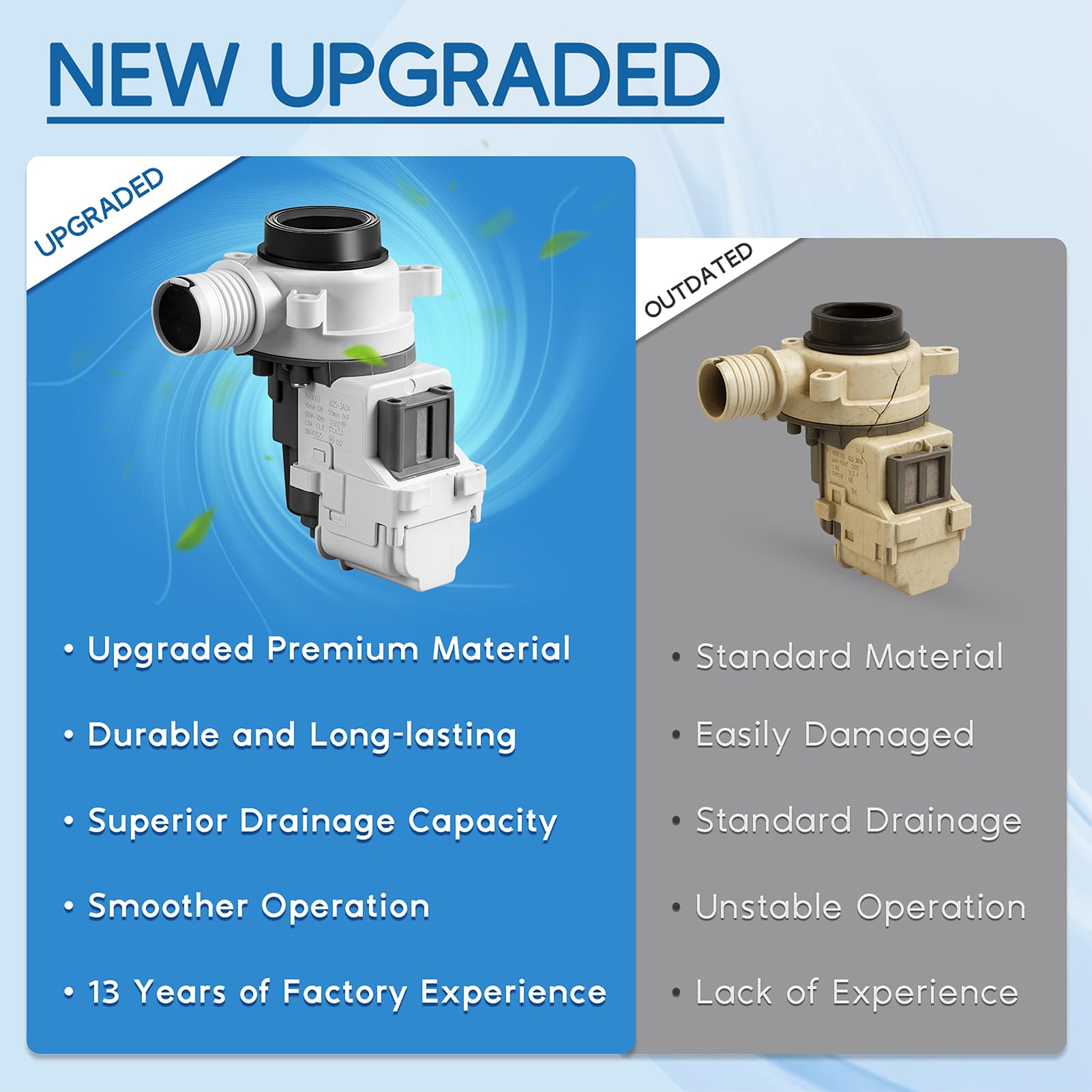 Upgraded, Durable Design: Our W11399437 washer drain pump for Whirlpool Maytag Kenmore with upgraded design, with high-quality and environmentally friendly materials, is made of high quality brass wire conductor and solid metal core. Upgraded anti-backwater design. It is well tested by the manufacturer, not easy to deform and break, providing you with long-term stable and excellent performance. Enjoy a smoother and quieter laundry experience with your washing machine.