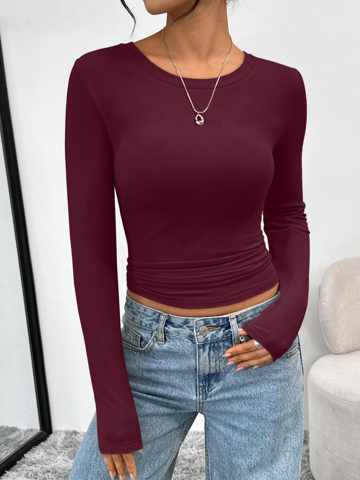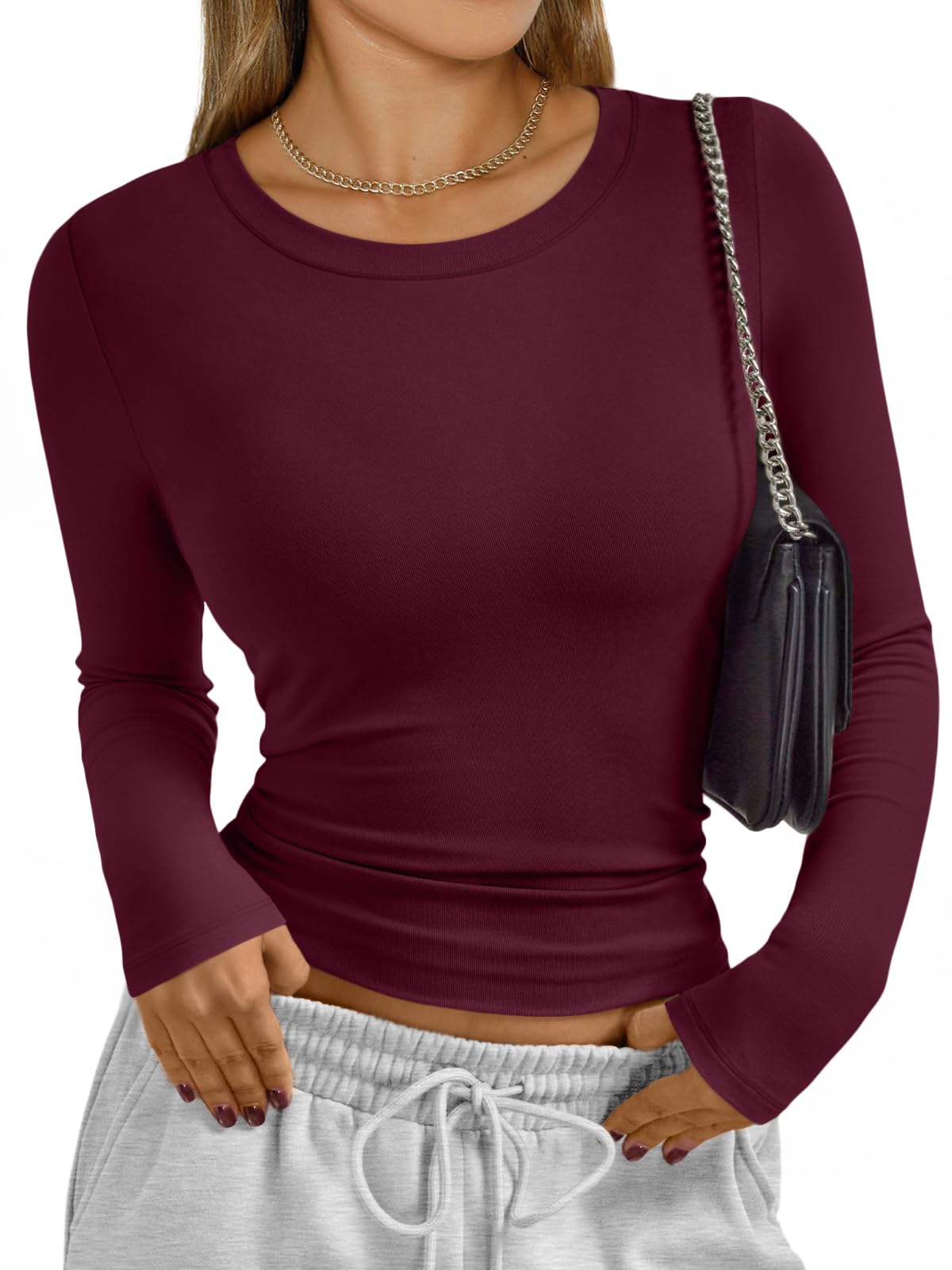 Stretch Design - Cropped and stretch fitted style,crew neck, tight underscrubs layer,you can wear it regularly or fold it up like a crop top,cute,slim fit,casual y2k style fashion 2025