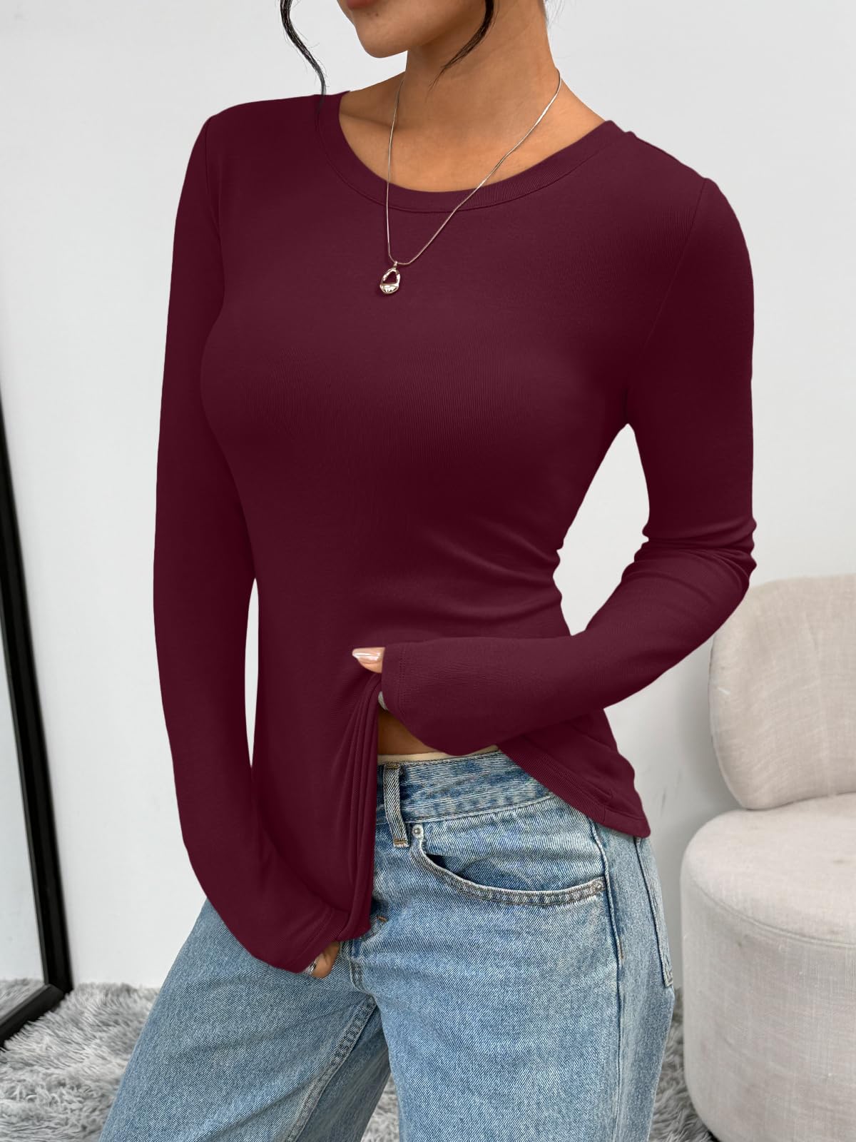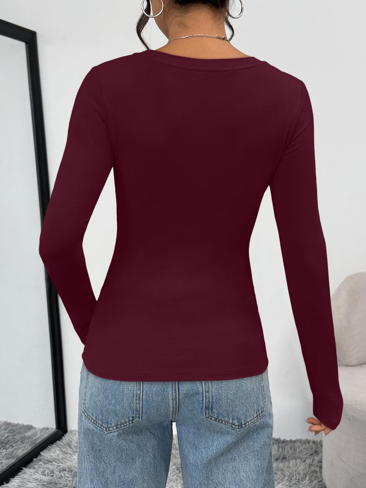 Soft Material - Womens long sleeve T-shirt is made of 92% polyester,8% spandex. Llight weight, super soft and high-stretch fabric with a second-skin fee