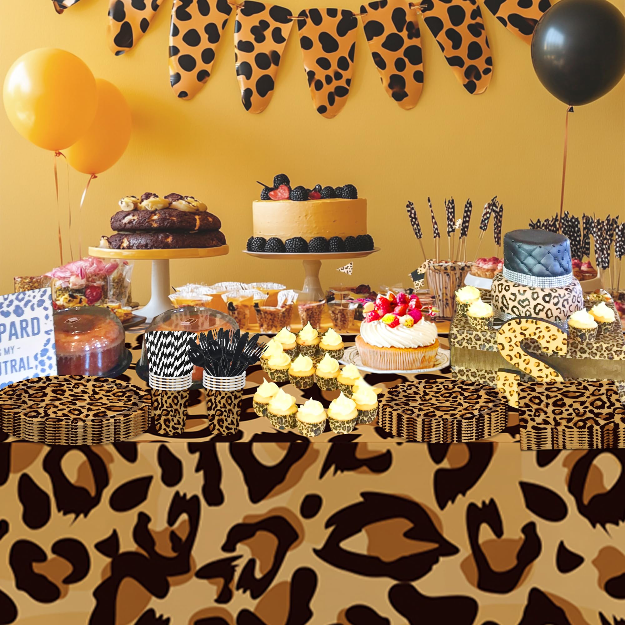 【Coordinates Beautifully 】This leopard print birthday party supplies coordinates effortlessly with other party decorations like balloons, banners, photo props, and party favors—making your setup cohesive and fun
