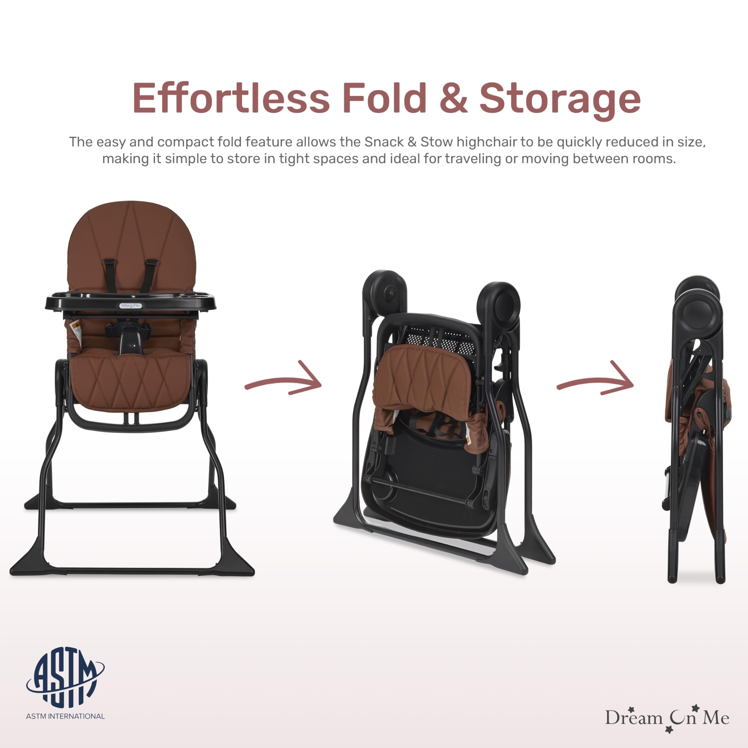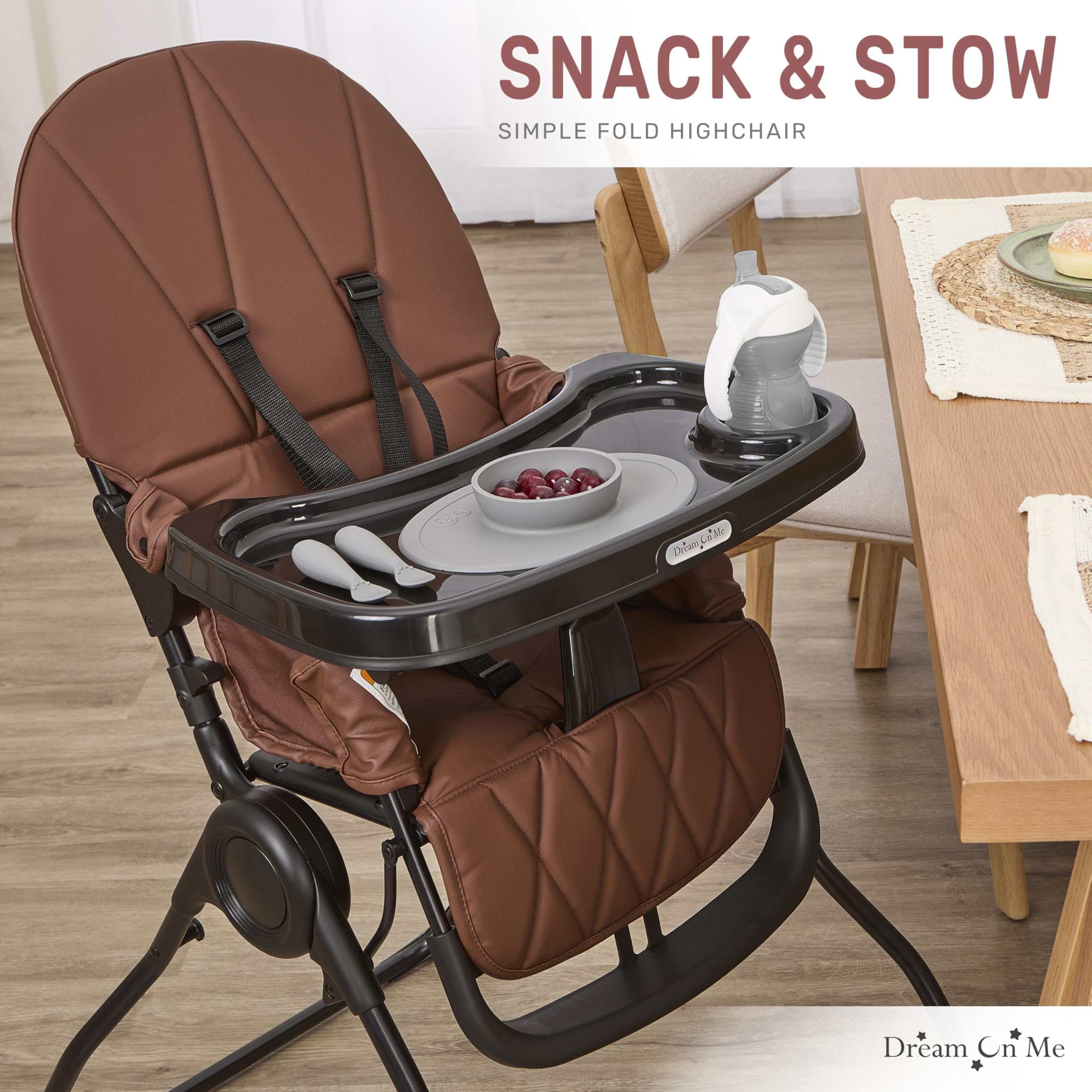 Mealtime can be a breeze with the Dream On Me Snack and Stow Highchair, thoughtfully designed for busy parents who need a convenient, portable feeding solution. This highchair is perfect for toddlers and infants alike, featuring a removable tray that adjusts to multiple positions, ensuring a comfortable feeding experience for your little one. The Snack and Stow Highchair is built with portability in mind. It folds flat for compact storage, making it ideal for families with limited space or those who need a highchair on the go. Whether youβre traveling or simply moving it between rooms, this lightweight highchair (just 8.5 lbs) makes mealtime easy wherever you are. With its adjustable tray, this highchair grows with your child, accommodating them as they move from bottle feeding to independent eating. The 5-point harness keeps them secure, while the non-slip feet provide stability during every meal. Parents will love how easy it is to cleanβsimply wipe down the seat cover and removable tray after mealtime to keep things tidy. Stylish and comfortable, the Dream On Me Snack and Stow Highchair complements any home dΓ©cor, while the padded seat offers comfort for your child during longer feeding sessions. Whether at home or on the go, itβs the perfect solution for families who value convenience and safety.