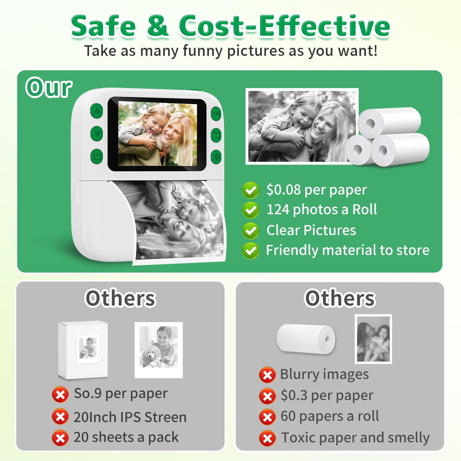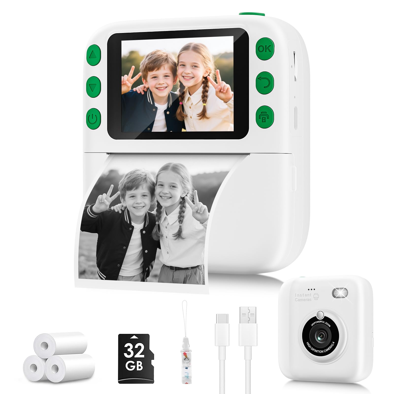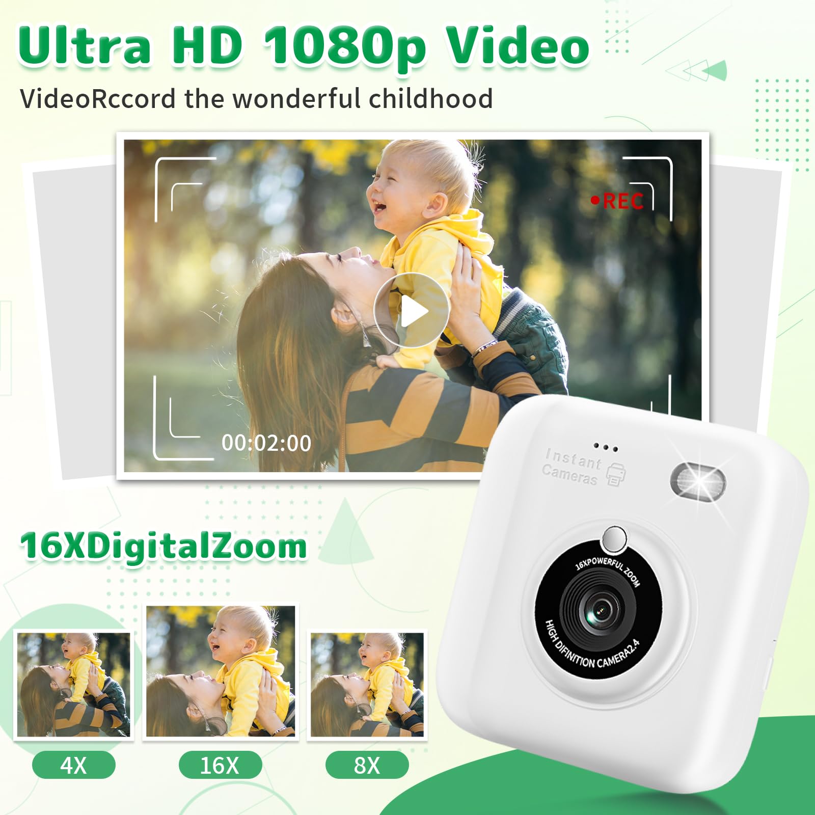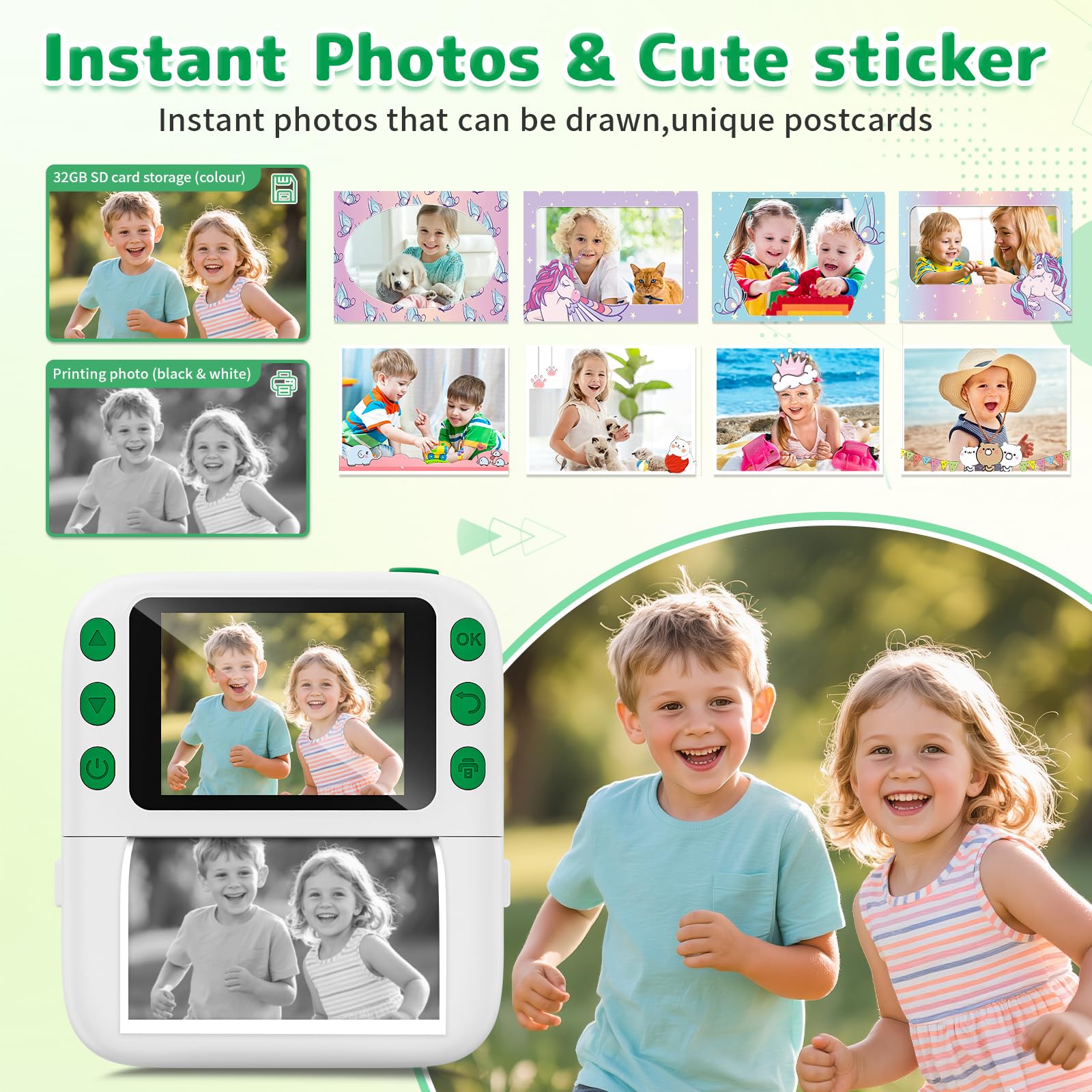 【Their 1st Real Camera - Fun All-in-One!】 Instant prints, big screen, 1080P video, zoom, games, music & more. The perfect creative sidekick for adventures—making every day special for your child and family.