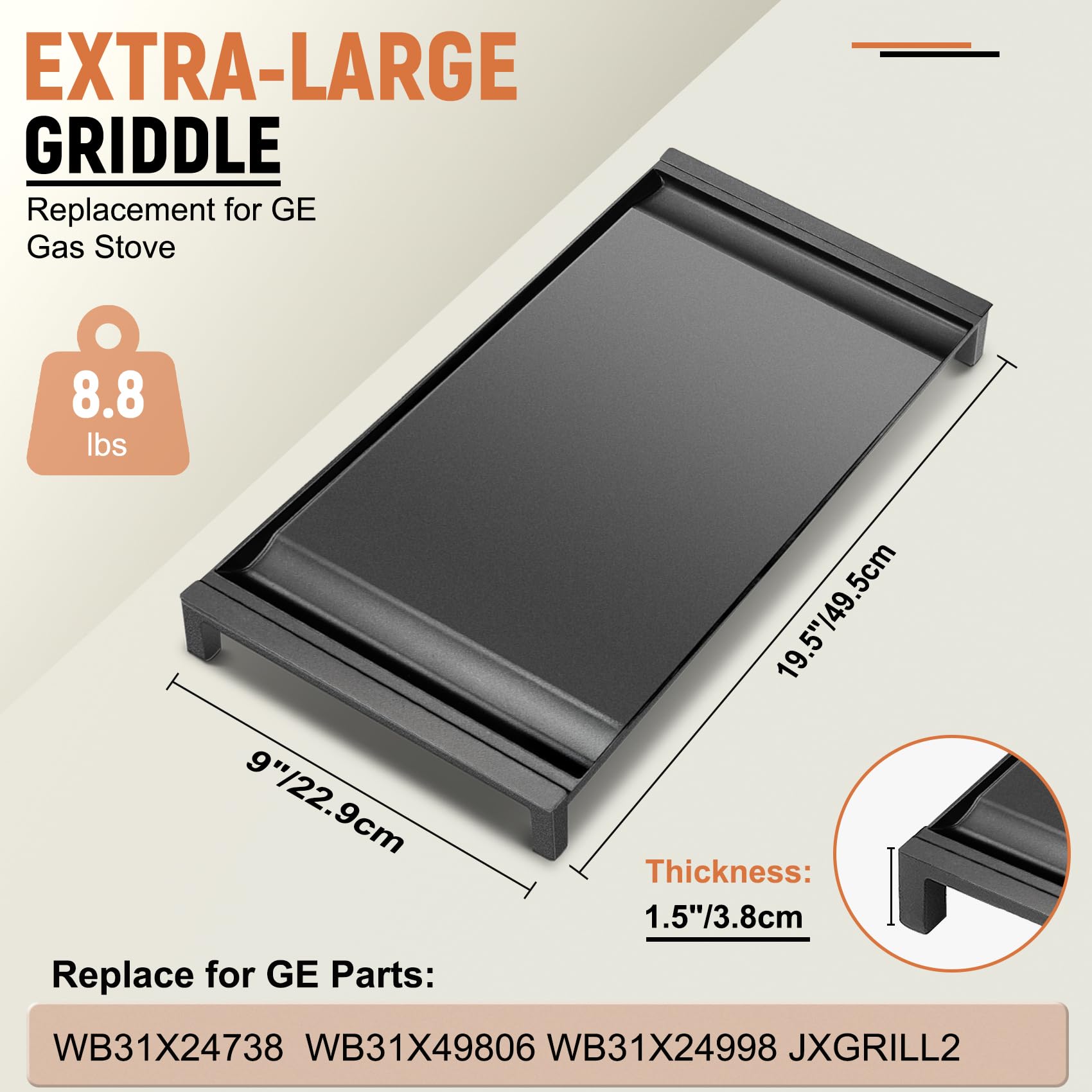 Easy to Clean: WB31X24738 non-stick griddle completely solves the sticking to the pan of poor-quality coatings, making it easy to clean food residue from the griddle. The lightweight design makes it easy for the elderly or those with limited strength to pick up and clean the griddle.