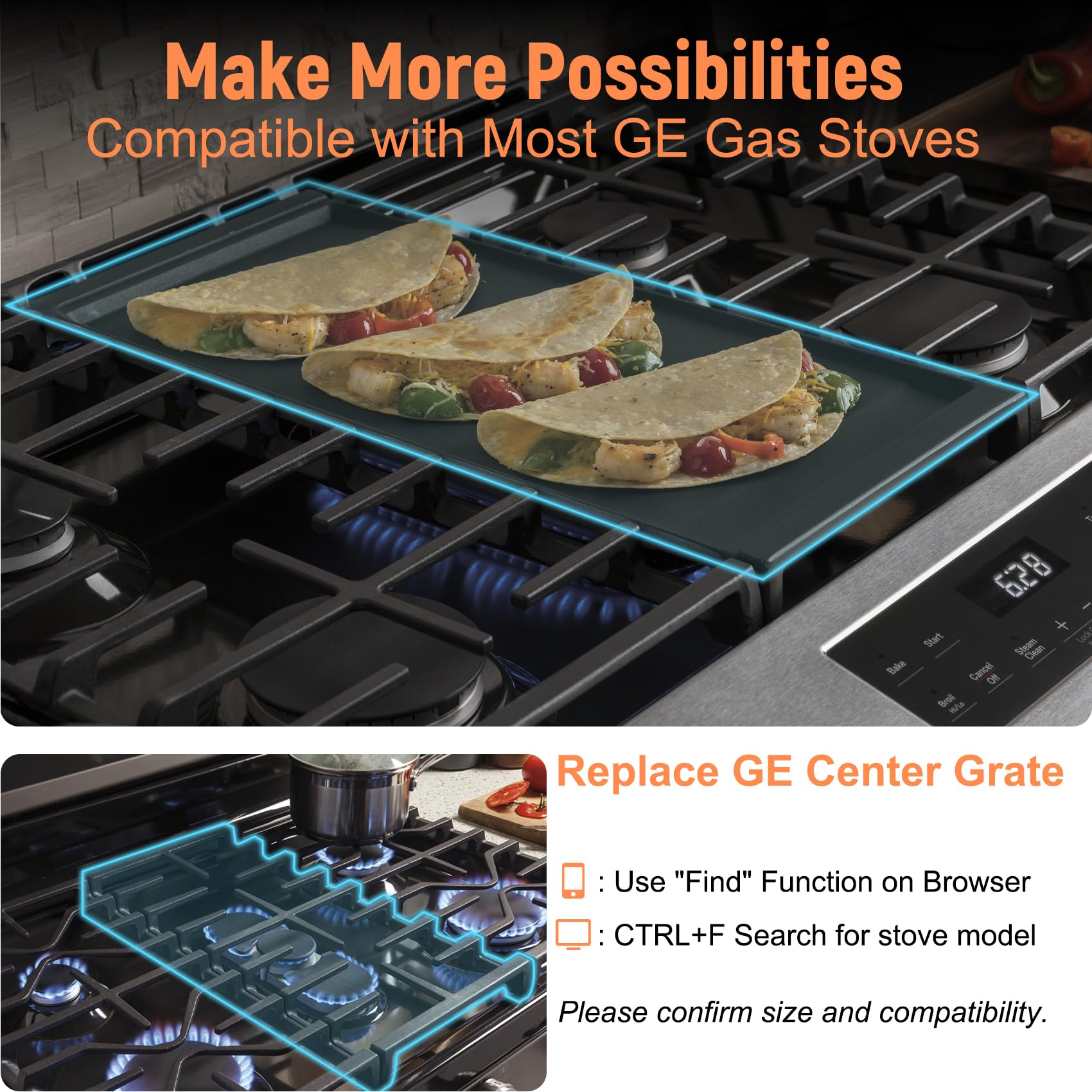 【Compatibility】WB31X24738 Center Griddle Compatible with GE Gas Stove Range Cooktop. It can be used to replace damaged central griddles or grates, and fits perfectly on center burners. Compatible GE stove models: JGB660, JGB700, JGB720, JGB735, JGB860, JGBS66, JGSS66 series, ect.