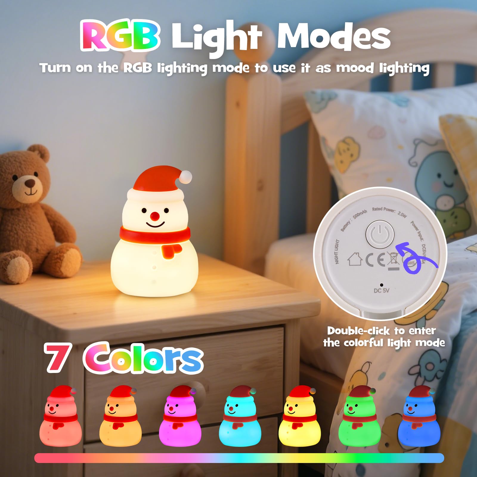 Multi-Color Modes for Every Mood - Press the sensitive touch control to switch through vibrant RGB color lighting mode or warm light mode. This Gefaxi fun Christmas snowman desk lamp offers 7 ambient colors, makes it a delightful accent for parties and holiday gatherings. Also, you could switch to the warm white mode and long press to adjust the brightness for a comforting sleeping vibe.