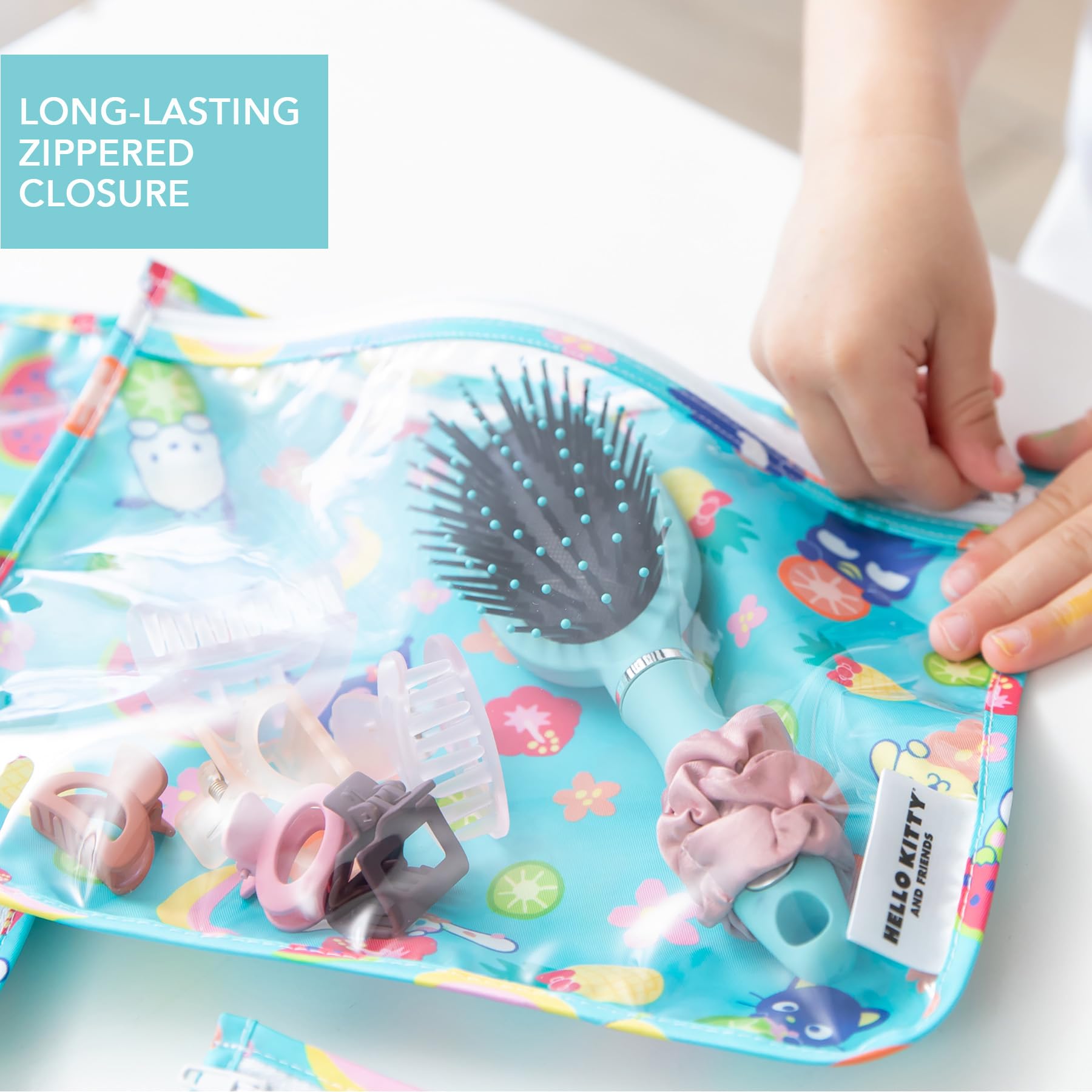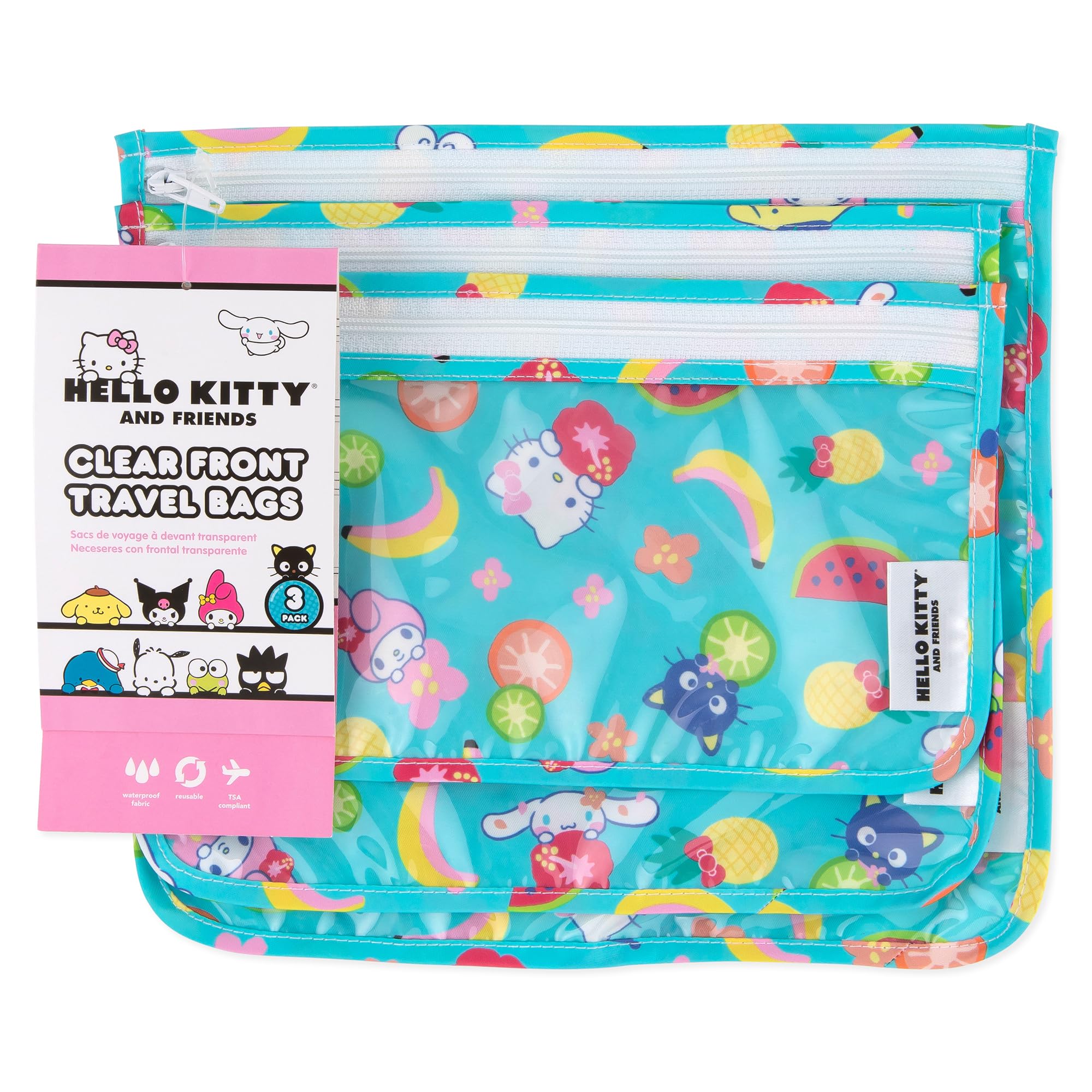 Travel the world, but make it kawaii with our Hello Kitty and Friends Fruit Punch Travel Bags. An alternative to single-use plastic bags to keep things organized, clear-sided 3-pack reusable travel pouches are TSA compliant, making it easy to go from your day-to-day and then through security. Not just for airplane travel – these travel bags make excellent organizers for toys, accessories, cosmetics, electronics, and more. Pack and stash inside your purse, travel bag, diaper bag, tote bag or backpack. The bags are lightweight and lay flat, so when traveling they take up less space when empty than other containers and cubes. With a strong and durable zipper closure, our bags keep your items secure. Bumkins uses third party labs to ensure the products we manufacture comply with CPSC and CPSIA standards for BPA, Lead, and Phthalates. The set includes 3 sizes: large: 9.5in x 8.5in; medium: 9in x 7in; small: 9in x 5in. Meets TSA requirement for size limit of 1 quart-sized bag (57.8 cubic inches). For over 30 years, Bumkins has been creating thoughtful and responsibly made essentials for babies and kids, making parenting easier so families can cherish those special moments. Designed in Arizona, responsibly made in China.
