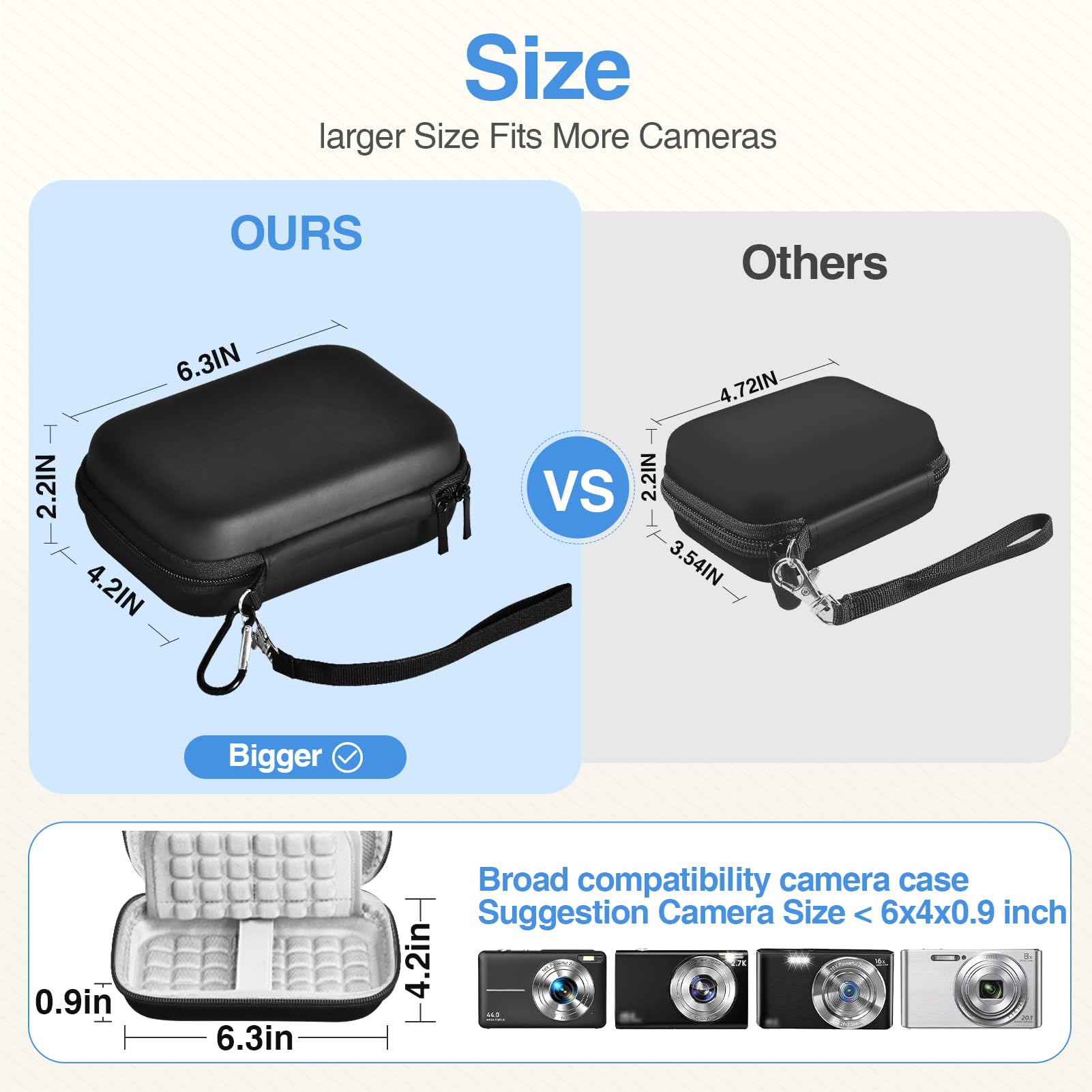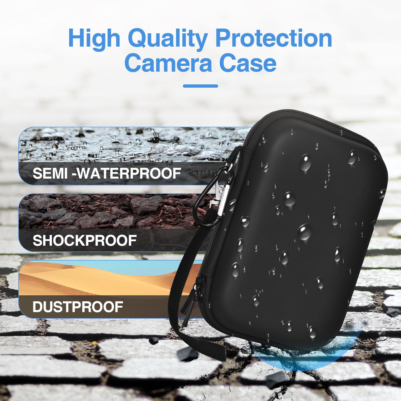 【Portable Design】Case External dimension: 6.3x4.2x2.2inch/16x10.7x5.5cm(L * W * H). Includes detachable wristband and climbing button for easy carrying for your comfort. You can carry canon powershot camera anywhere, put point and shoot digital cameras case in your hand. Kids digital camera case is slim and lightweight, save space and can easily slide into your backpack or other bag.