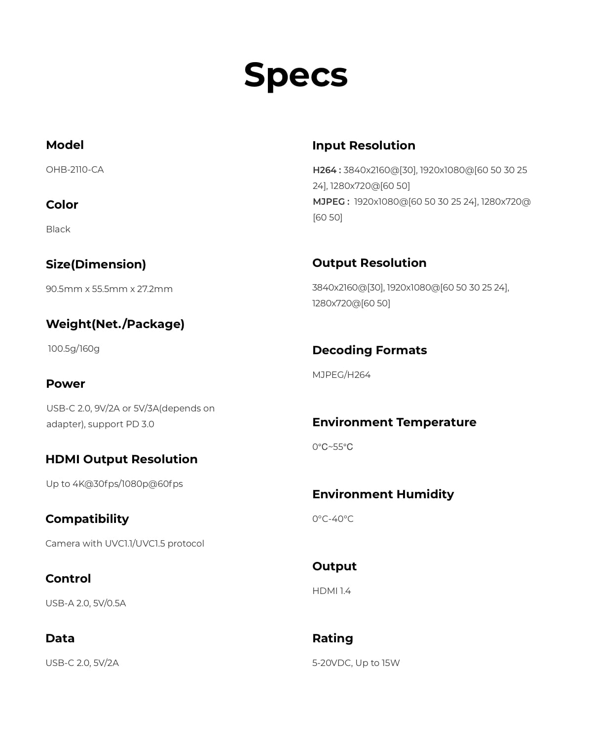 【Superb 4K UVC to HDMI Conversion】Support the conversion between the UVC and the HDMI, with up to 4K@30fps & 1080p@60fps resolution and decoding solution, the OBSBOT UVC to HDMI adapter allows you to unfold more possibilities of the OBSBOT webcam devices.
