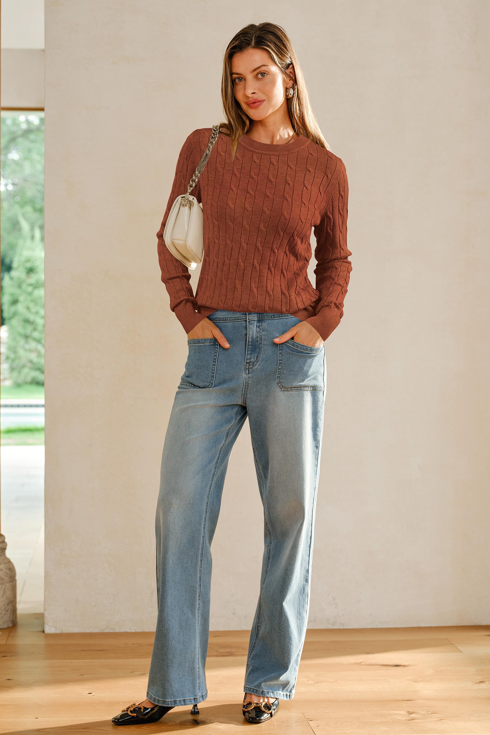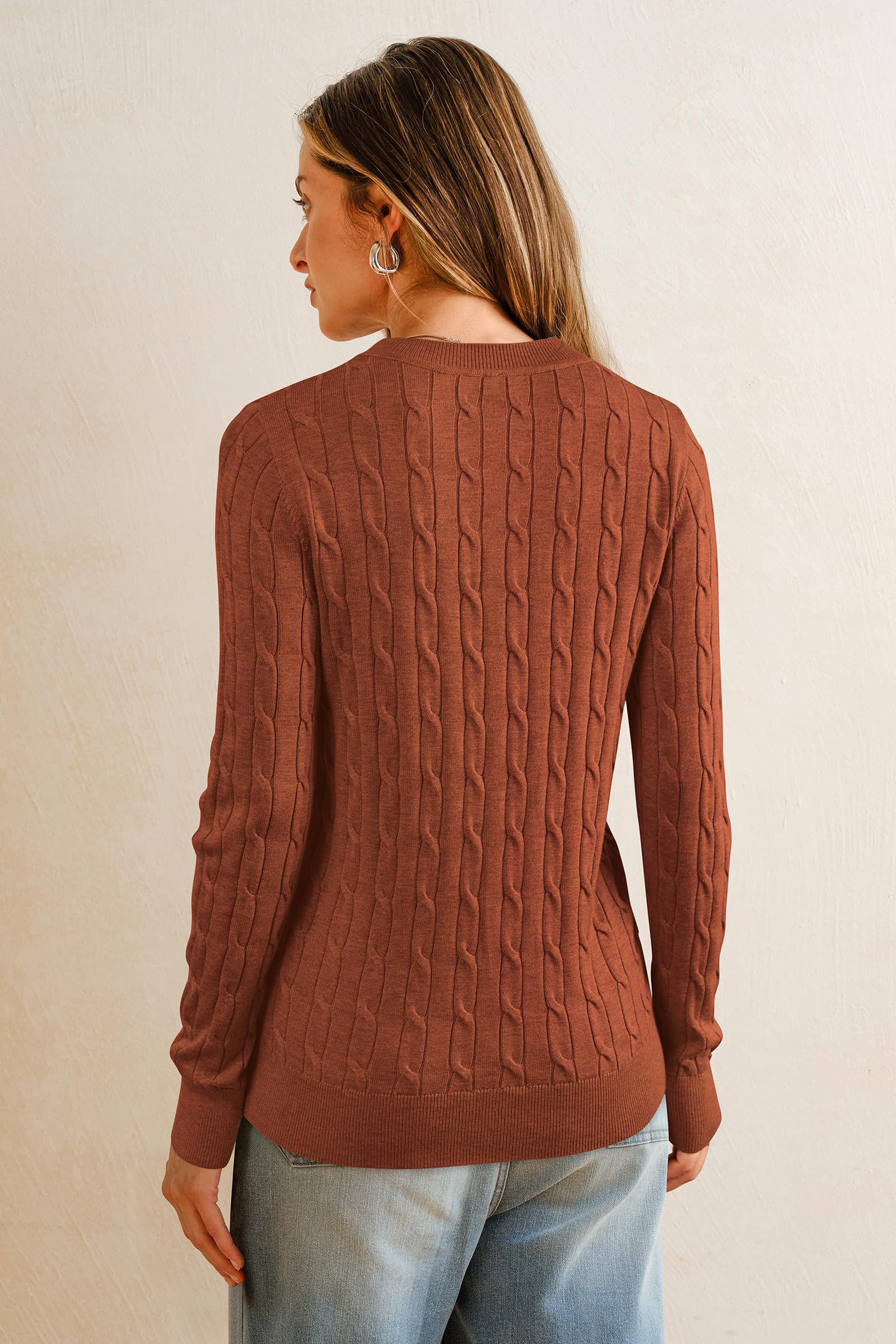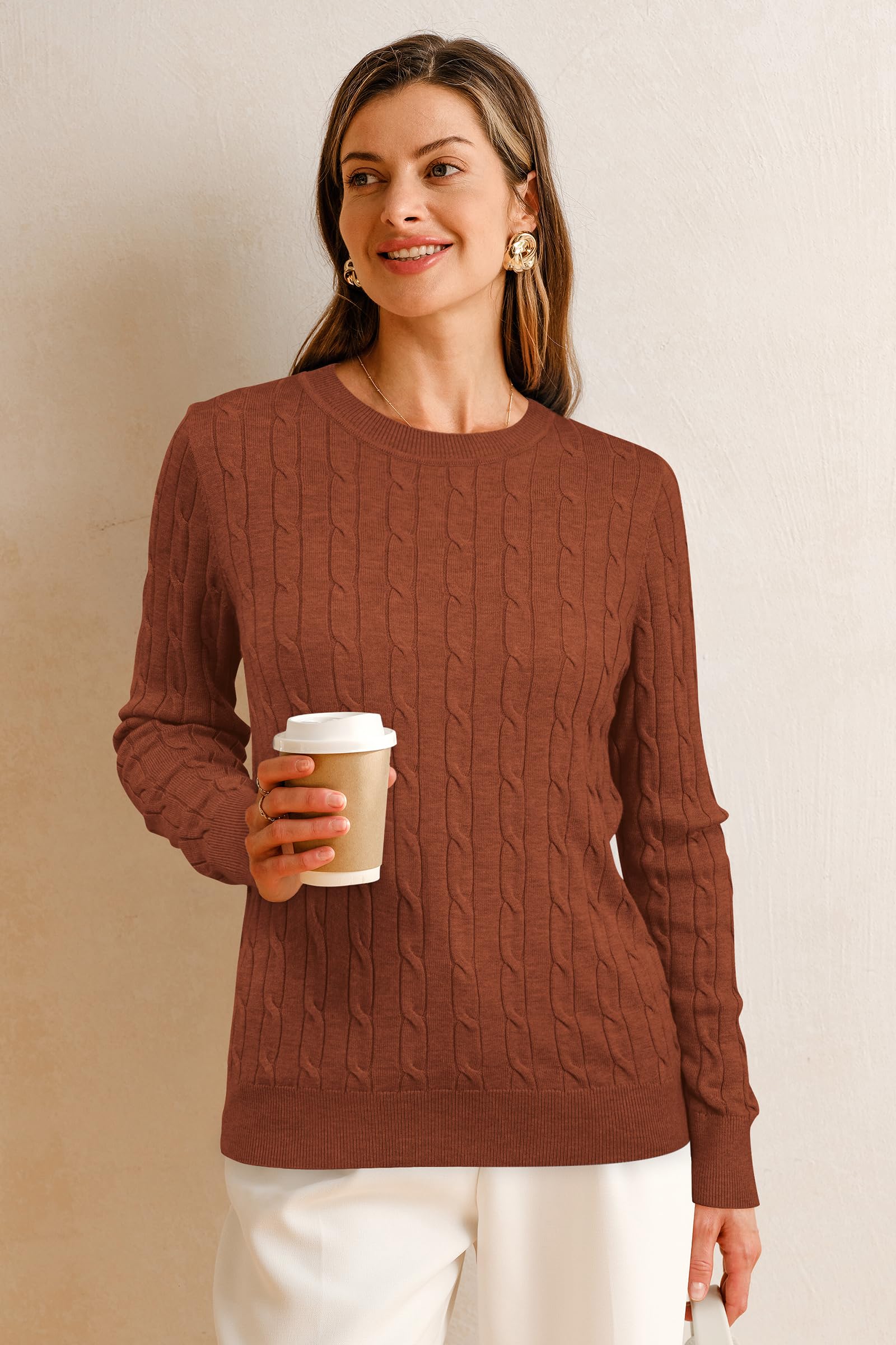 Features: Women's Classic Cable Knit Tops / Long Sleeve / Crew Neck / Loose Fit / Winter Layering / Elasticated Hem / Pullover Sweater