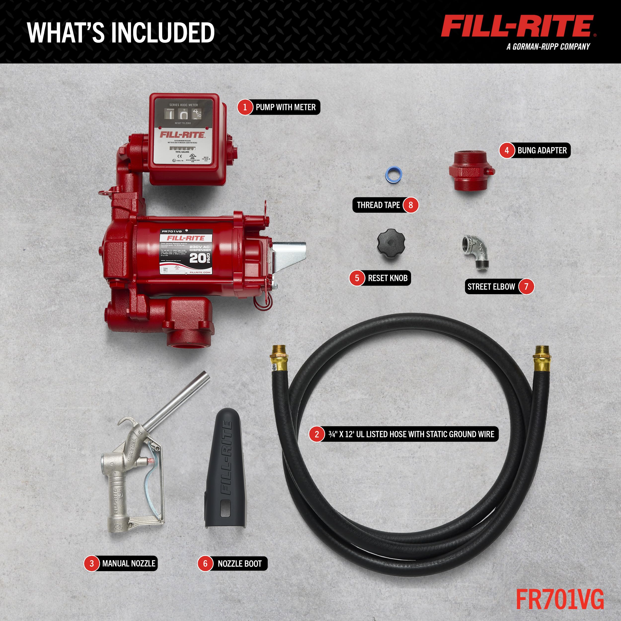 High Performance — Fill-Rite’s trusted rotary vane pump technology delivers 20 gallons per minute, perfect for filling large equipment with fuel tanks sized at 20-80 gallons