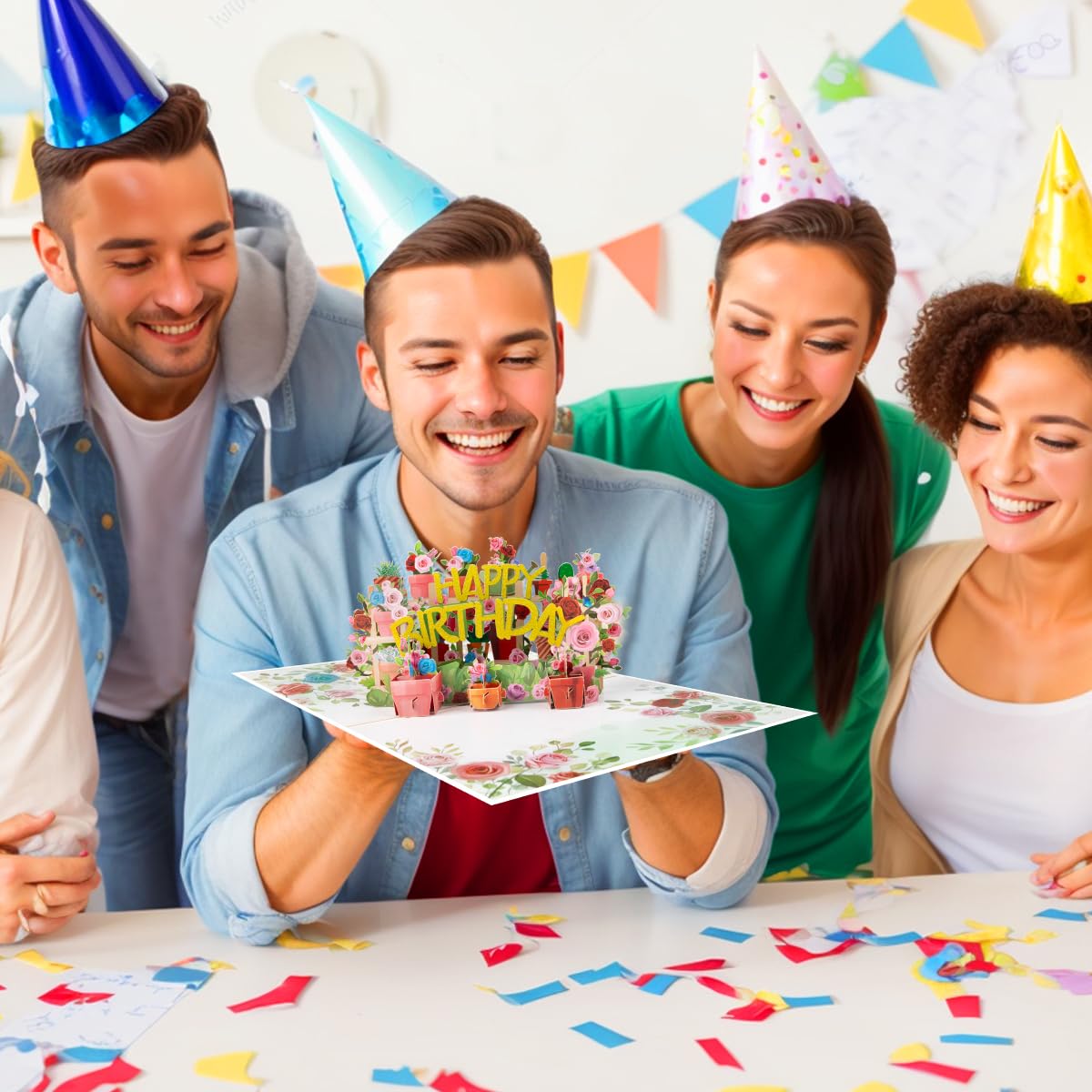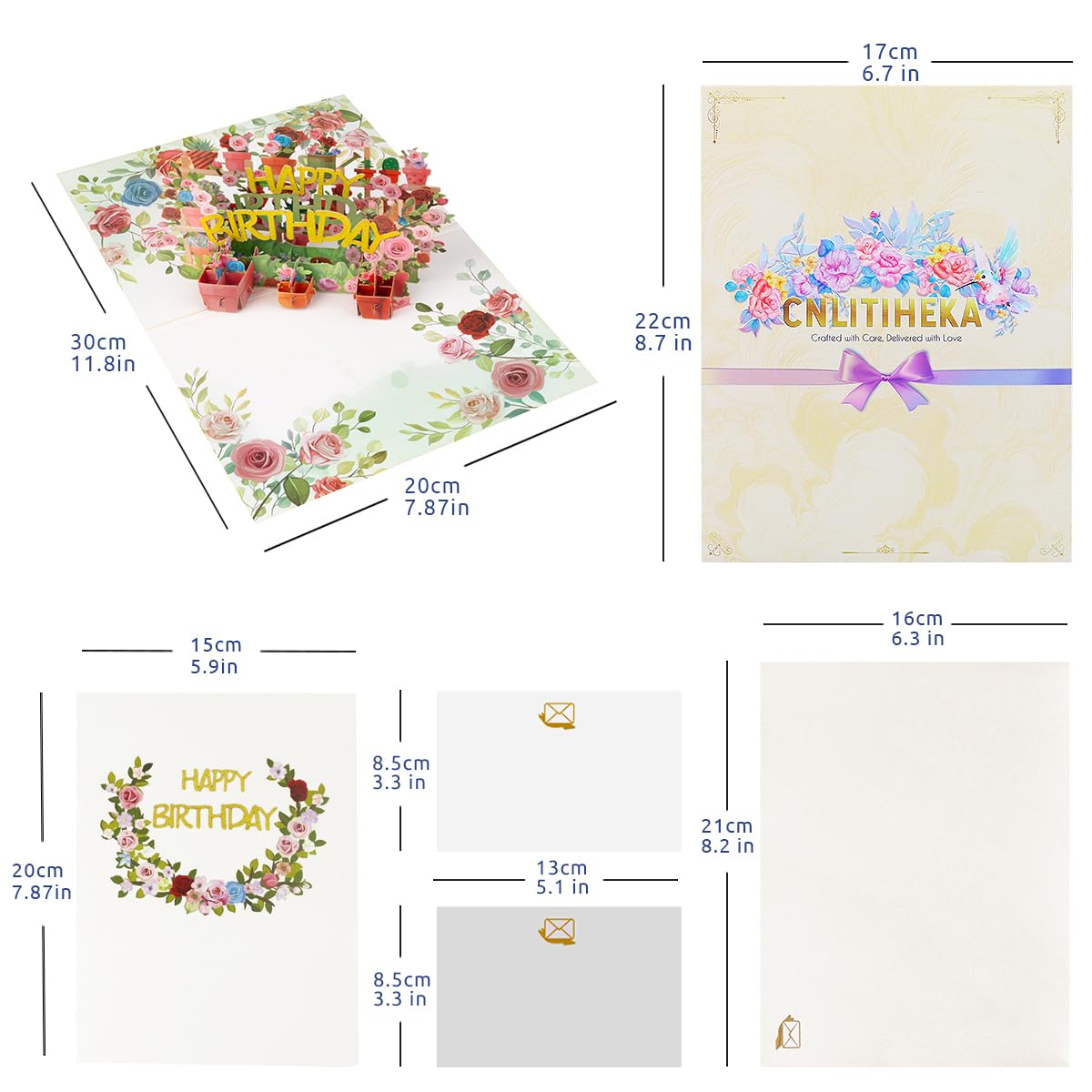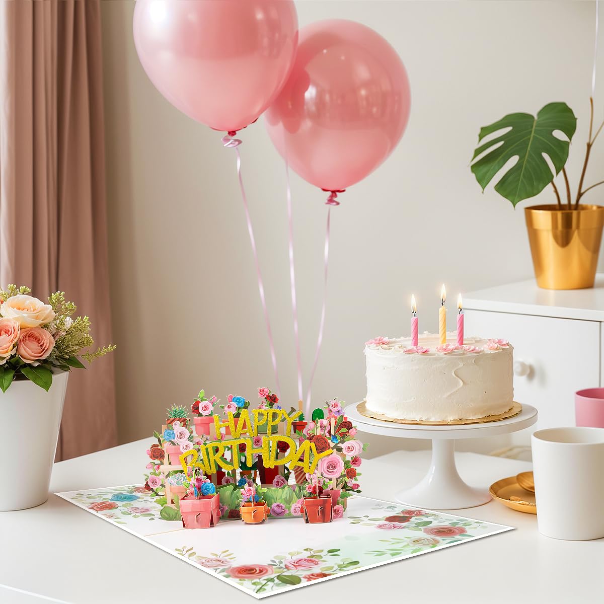 【Flower Birthday Greeting Card】A beautiful pop-up birthday card features an exciting and unique 3D design. Open the card to a happy scene with flowers, presents, and an "Happy Birthday" in the center. Give it to a loved one or a friend and it will surely surprise and delight them.