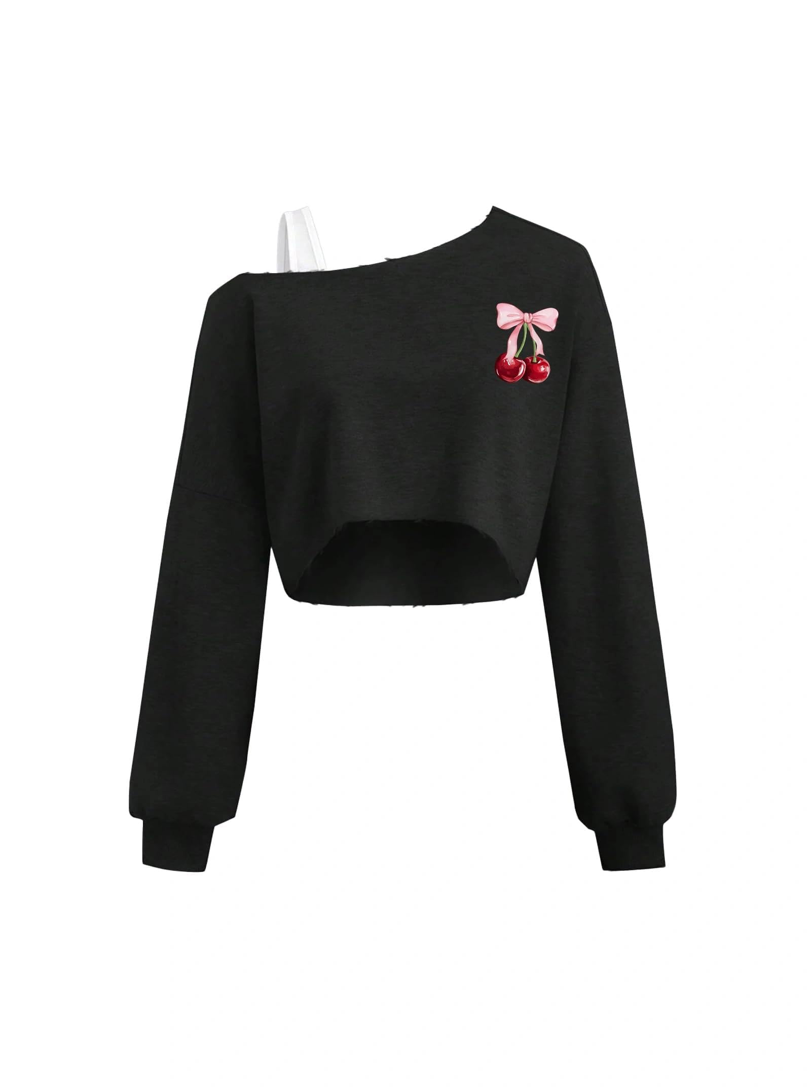 FEATURES: Featuring a off shoulder, long sleeve, these girls cropped sweatshirt showcase trendy stitch with cute charm—ideal for girls of all ages