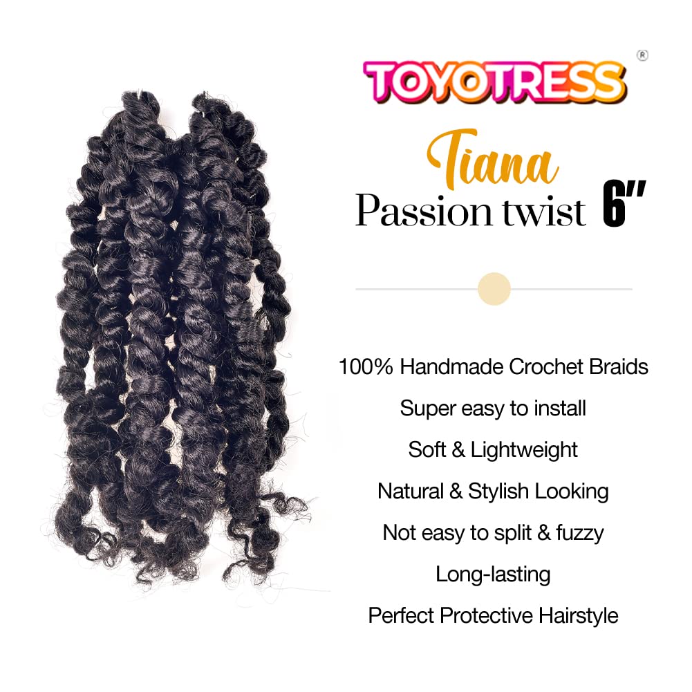 Brand Name: Toyotress TIANA passion twist hair pre-twisted made of bohemian hair, pre-looped passion twists crochet braids braided by Professional hair stylist.
