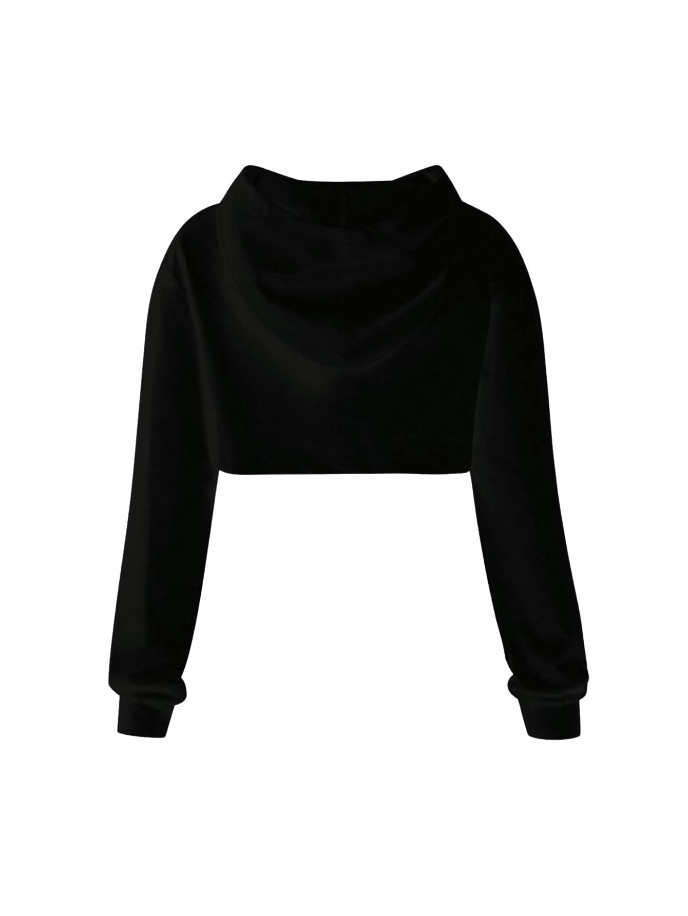 Design: Drop shoulder, pullover, long sleeve, hooded, high low asymmetrical hem, solid color, cropped length, solid color, casual style