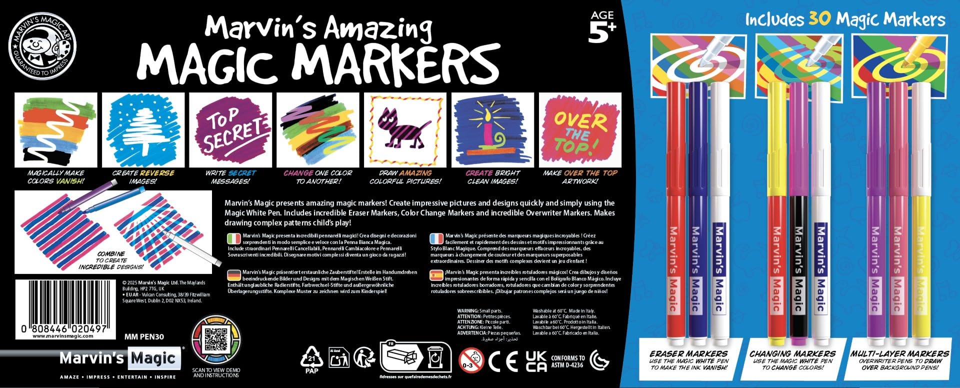 TIME TO GET ARTISTIC: Create marvellous magic art using 30 magic pens with amazing powers! Write secret messages, create stunning 3D lettering and make your art vanish, all with no mess and no fuss. These coloring pens are fantastically fun and perfect for the budding artist or anyone looking to find a new way to get creative!