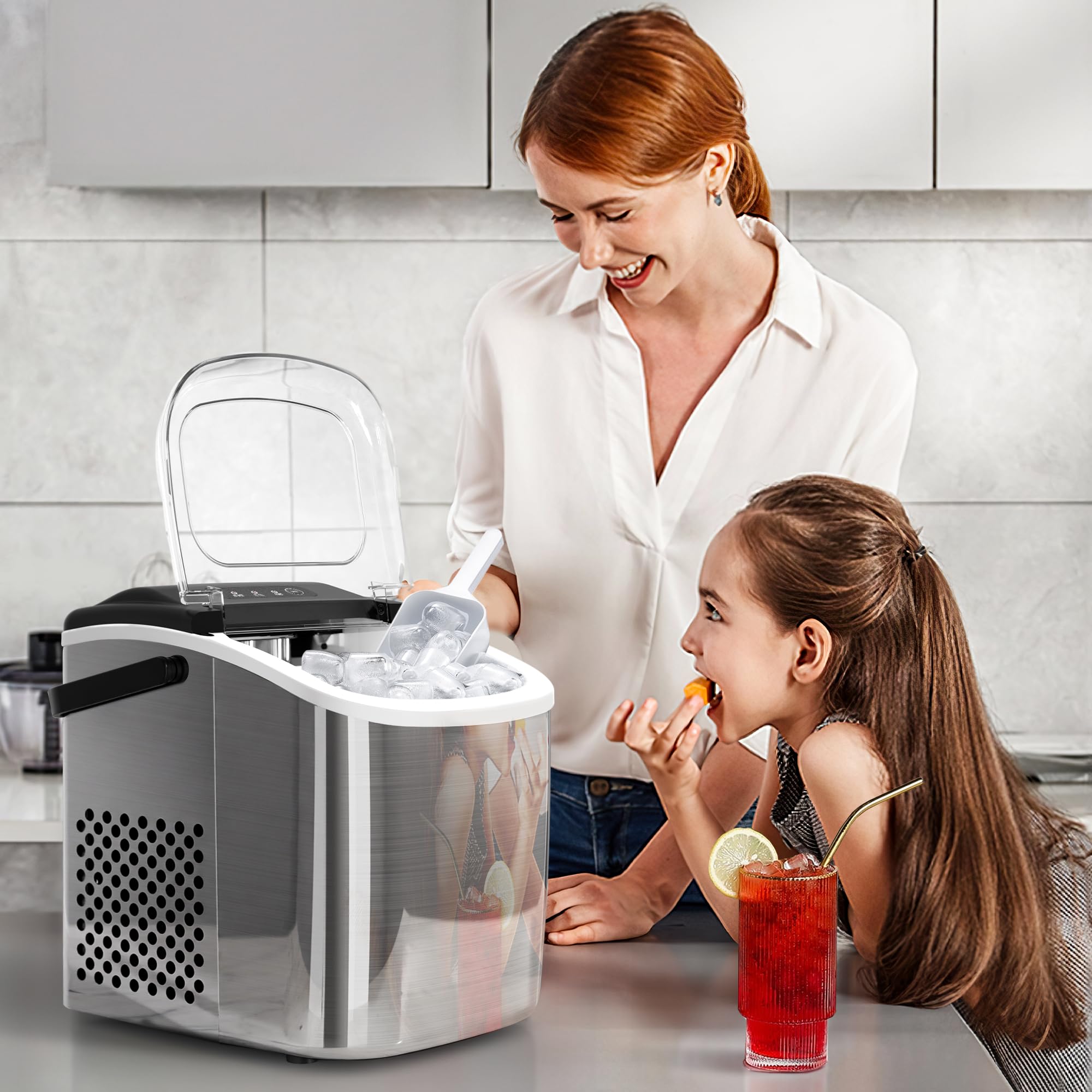Quick Ice Making in 6-8 Mins - Crzoe countertop ice maker allows you to get crisp and tasty rounded ice cubes quickly. It could prepare 9 bullet-shaped Ice cubes ready in 6 mins and make 26 lbs per day. You can enjoy a cool and refreshing summer in just only a few minutes!