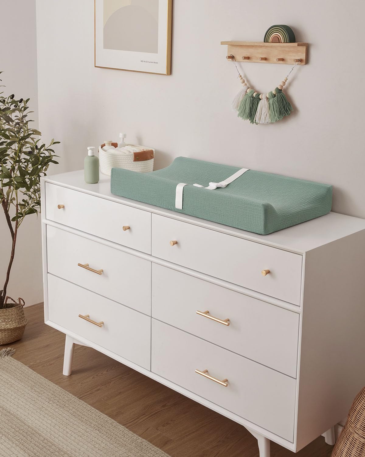 Design Your Dream Nursery: Our muslin baby changing pad in Roman Green adds an elegant and soothing vibe in your nursery. It's the first choice for modern parents, an unforgettable unisex baby shower gift that new parents will love