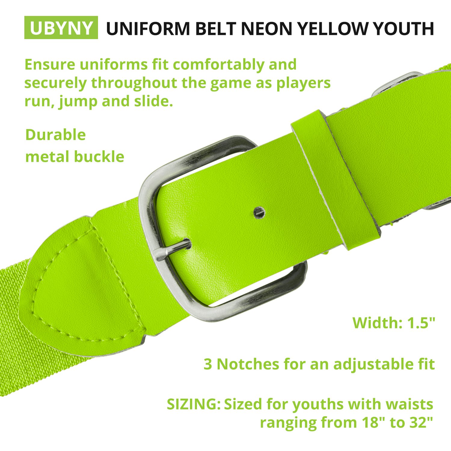 Ensure your uniform stays put with the Champion Sports Uniform Belt. Designed for versatility, this belt features an adjustable elastic band that stretches to fit youth and adult waists. A sturdy metal buckle and leather tab offer lasting durability, while the 1.5" width provides a clean, professional look. Choose from a wide range of colors to perfectly match your team's uniform.