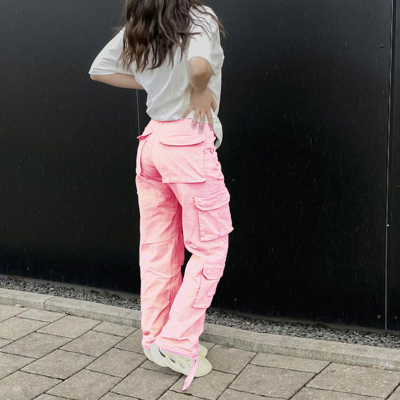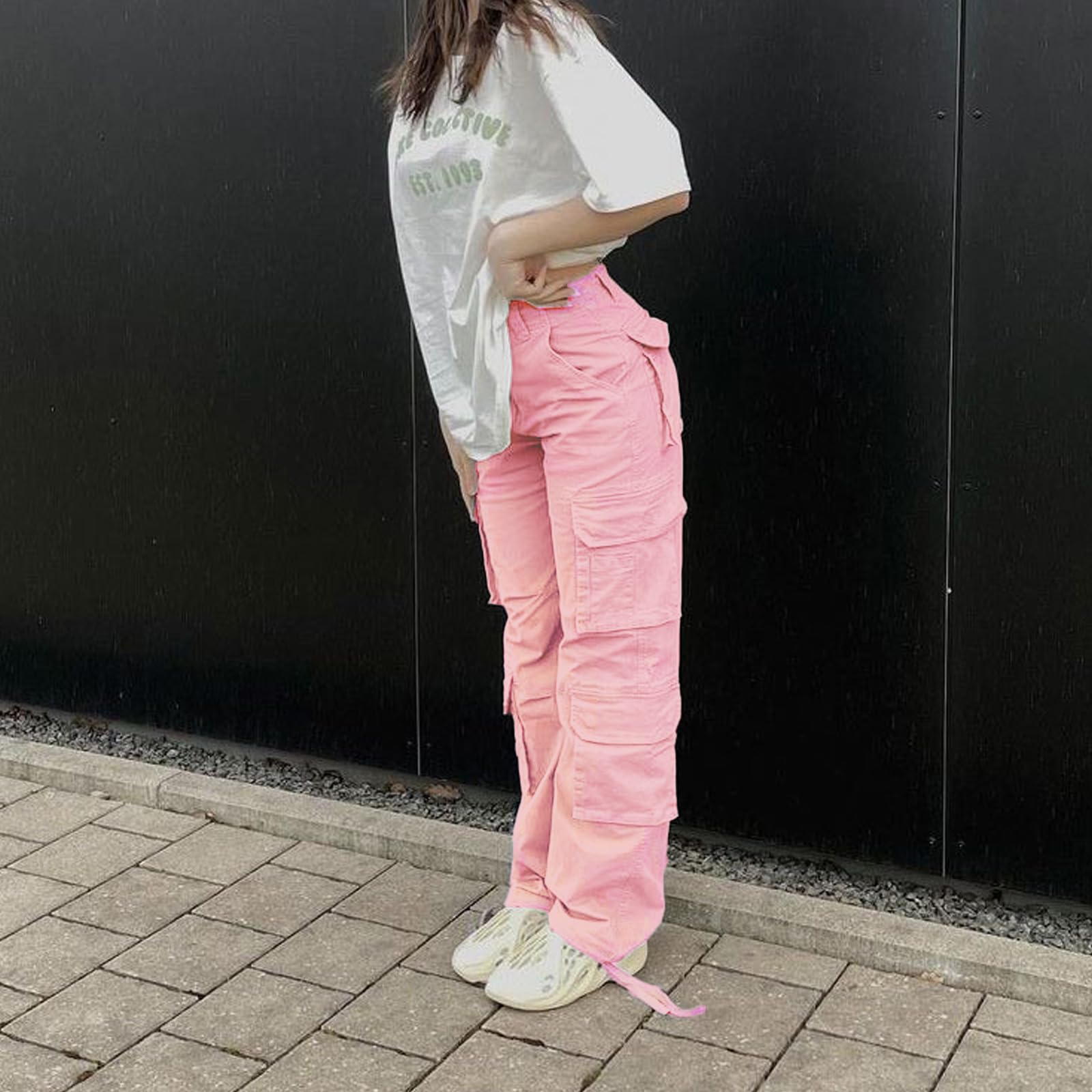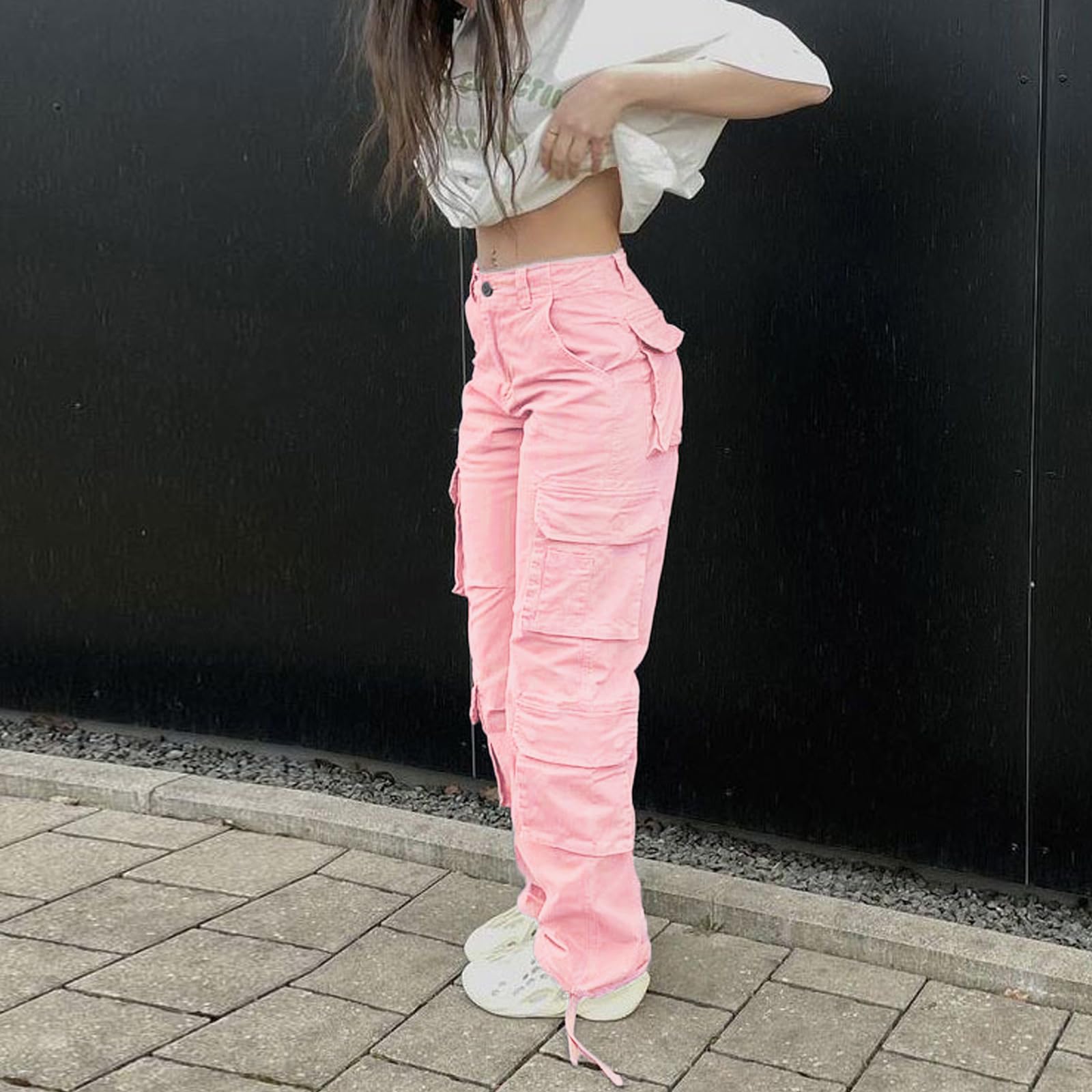Features: fashion y2k straight wide leg baggy pants, casual high waist designed with flap pockets, straight leg cutting with drawsytring hem, zipper fly-button closure, y2k style, relaxed fit cargo pants, classic but trendy, better to shape your carves.